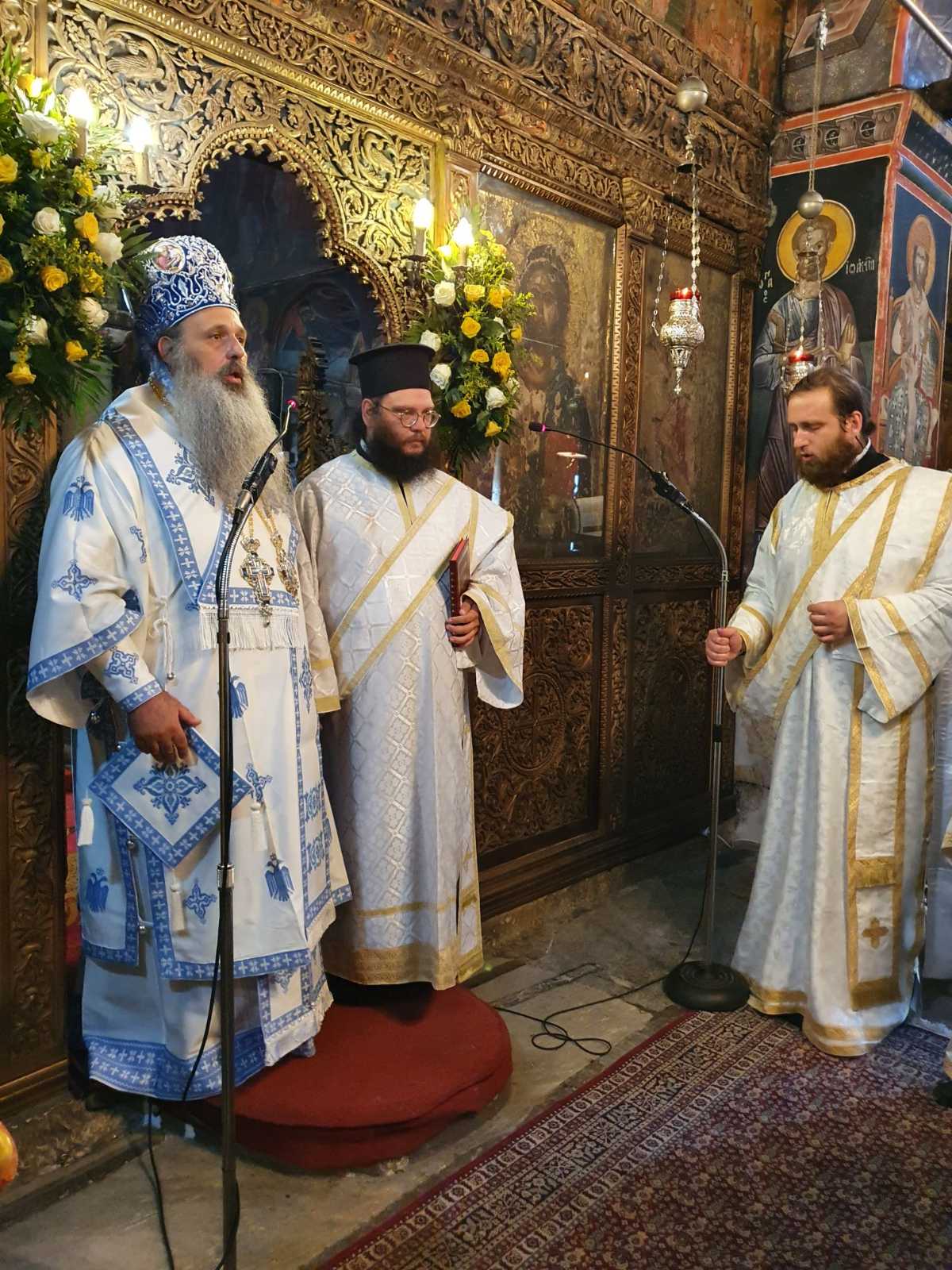 Πριν την απόλυση της θείας Λειτουργίας, ο Σεβασμιώτατος αναφέρθηκε στην αγομένη εορτή και στην σημασία της. Επεσήμανε την αξία της Υπεραγίας Θεοτόκου για το ανθρώπινο γένος, το οποίο με την μεσιτεία της βρίσκει παρρησία στον θρόνο του Θεού. Τέλος, ευχήθηκε σε όλο το χριστεπώνυμο πλήρωμα, που είχε προσέλθει με ευλάβεια στον ιστορικό και περικαλλέστατο Ναό της Θεοτόκου, να έχει πνευματικη και σωματική υγεία.