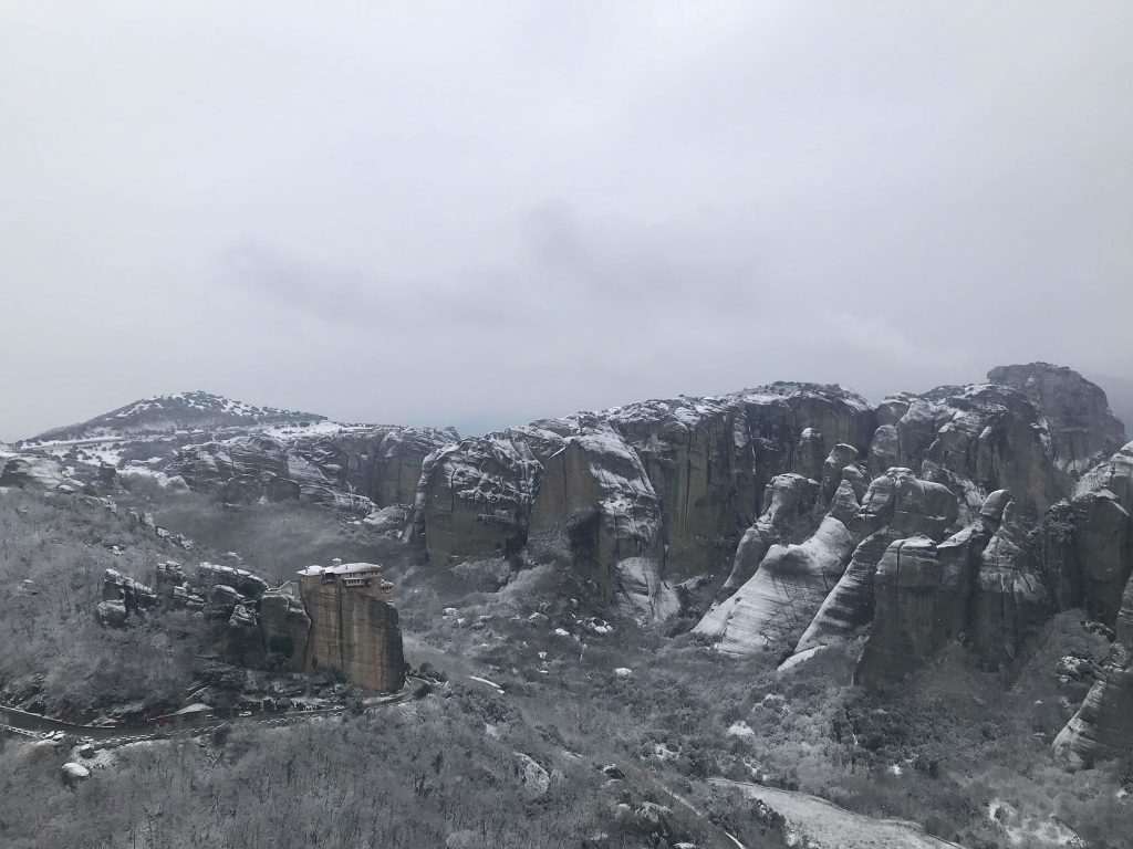 Μοναδικές εικόνες προσφέρουν τα χιονισμένα Μετέωρα.