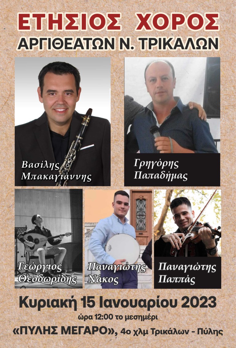 Στις 15 Ιανουαρίου 2023 ημέρα Κυριακή και ώρα 12:00 το Μεσημέρι στο κέντρο ‘’ΠΥΛΗΣ ΜΕΓΑΡΟ’’ ( Τρικάλων-Πύλης) θα πραγματοποιηθεί ο ετήσιος χορός του Συλλόγου Αργιθεατών.