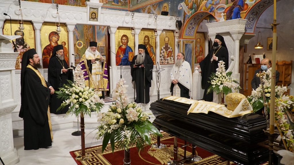 Όπως κατέγραψε το trikalavoice.gr (δείτε ΕΔΩ) η Εξόδιος Ακολουθία τελέστηκε στον Προσκυνηματικό Ναό Αγίου Βησσαρίωνος, χοροστατούντος του Μητροπολίτου Διδυμοτείχου Δαμασκηνού-πνευματικού τέκνου του Μακαριστού-συγχοροστατούντων των Μητροπολιτών Σταγών & Μετεώρων Θεοκλήτου και Θεσσαλιώτιδος και Φαναριοφερσάλων Τιμοθέου και από θρόνου ο επιχώριου Μητροπολίτου Τρίκκης και Σταγών Χρυσοστόμου.