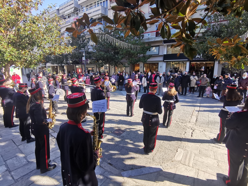 Τα κάλαντα και χριστουγεννιάτικα τραγούδια άκουσαν την Παρασκευή 24 Δεκεμβρίου 2021 έψαλαν και παιάνισαν τα μέλη της Δημοτικής Φιλαρμονικής Τρικάλων.