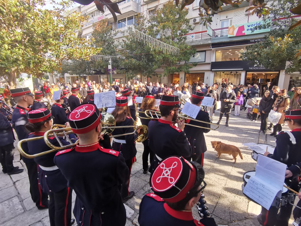 Τα κάλαντα και η πορεία στους πεζοδρόμους είναι μια ετήσια γιορτινή εμφάνιση της Δημοτικής Φιλαρμονικής που, με την 125χρονη παρουσία της, μεταφέρει το μήνυμα των Χριστουγέννων με νότες.