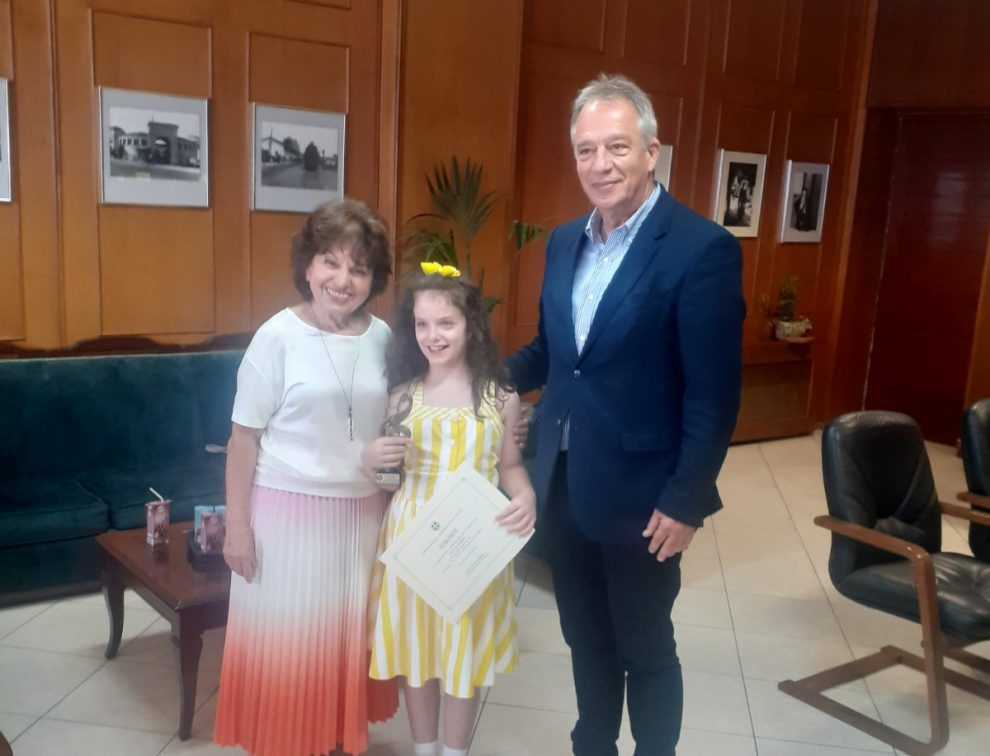 Στην Περιφερειακή Ενότητα Τρικάλων βρέθηκαν το πρωί της Τρίτης η Τασία Κασιώλα και η μαθήτρια του Ωδείου Τρικάλων Α. Κασιώλα Ιωάννα Σκρέκα, όπου συναντήθηκαν με τον Αντιπεριφερειάρχη Τρικάλων Χρήστο Μιχαλάκη. Η επίσκεψη έγινε με αφορμή τις νέες πολύ σημαντικές διακρίσεις που απέσπασε η Ιωάννα Σκρέκα την προηγούμενη περίοδο στους διαγωνισμούς που συμμετείχε, αλλά και τρεις ακόμη μαθητές του Ωδείου, της τάξης Βιολιού Jung Eun Lee.