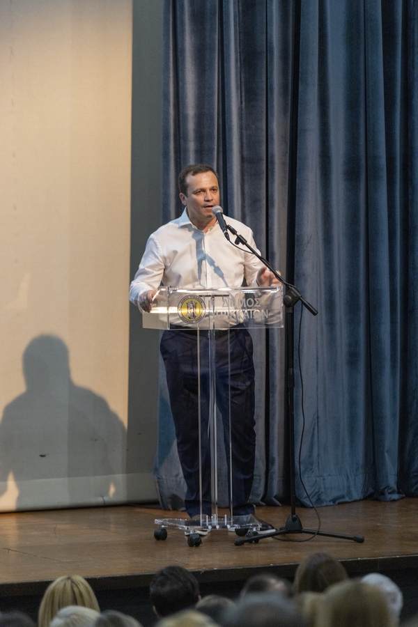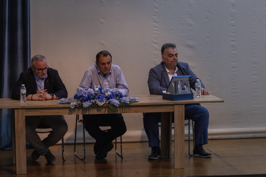 Ο κ. Σκρέκας καλωσόρισε τον κεντρικό ομιλητή της εκδήλωσης, πρώην υπουργό Εθνικής Άμυνας Νίκο Παναγιωτόπουλο, τονίζοντας: «Μας έκανες περήφανους με τη δουλειά που έκανες στο υπουργείο Εθνικής Άμυνας. Το έργο σου είναι μια παρακαταθήκη προόδου για την Ελλάδα γιατί χωρίς ειρήνη δε μπορεί να υπάρξει πρόοδος σε αυτή τη χώρα».