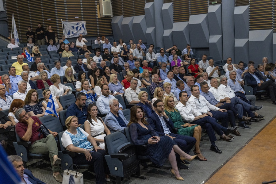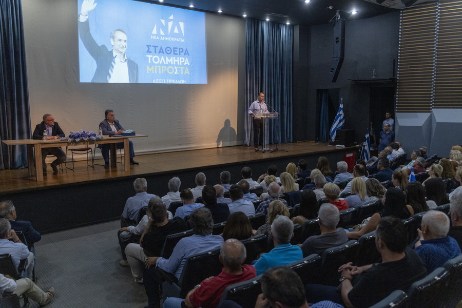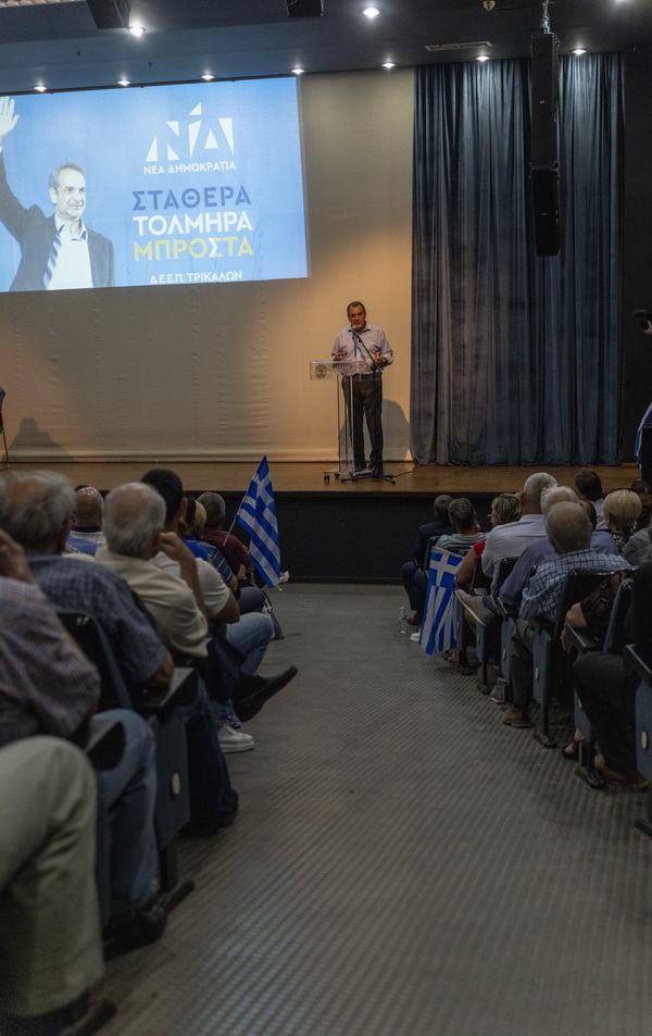 Χωρίς τον αναμενόμενο κόσμο, ίσως λόγω θέρους, ίσως λόγω σιγουριάς για τη νίκη, η κεντρική προεκλογική εκδήλωση της Ν.Δ. στα Τρίκαλα το βράδυ της Πέμπτης.