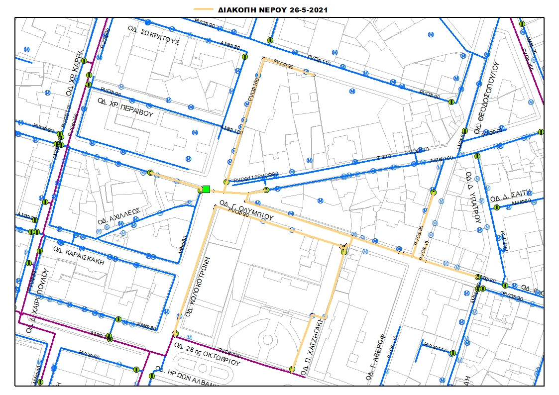 Συγκεκριμένα από την υπηρεσία υδρεύσεως της Δ.Ε.Υ.Α.Τ. ανακοινώνεται ότι αύριο Τετάρτη 26/5/2021 λόγω επισκευής αγωγού ύδρευσης, θα υπάρχει διακοπή νερού στην οδό Κολοκοτρώνη από το ύψος της οδού 28ης Οκτωβρίου έως το ύψος της οδού Σωκράτους, στην οδό Χατζηγάκη από το ύψος της οδού 28ης Οκτωβρίου έως το ύψος της οδού Ολυμπίου, στην οδό Αβέρωφ από το ύψος της οδού Ολυμπίου έως το ύψος της οδού Αχιλλέως, στην οδό Ολυμπίου από το ύψος της οδού Κολοκοτρώνη έως το ύψος της οδού Κοπάδη, στην οδό Σωκράτους από το ύψος της οδού Κολοκοτρώνη έως το ύψος της οδού Θεοδοσοπούλου, και τέλος στην οδό Διάκου από το ύψος της οδού Κολοκοτρώνη έως το ύψος της οδού Καρρά η οποία θα διαρκέσει από τις 09:00 π.μ. έως τις 11:00 π.μ.
