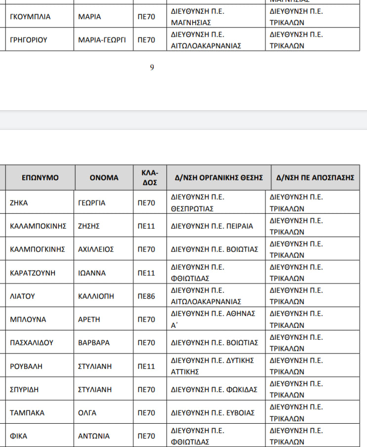 Αναλυτικά στην Α/θμια έρχονται οι: