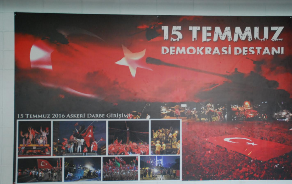 Η εικόνα τα λέει όλα. Μπροστά στην είσοδο των σχολείων , να σου μια ογκώδης αφίσα (λες κι ο όγκος δίνει αξία) με τη σημαία της χώρας και μέσα του κολάζ φωτογραφιών από ένα πραξικόπημα που κατέληξε σε διώξεις χιλιάδων συναδέλφων μας μέχρι και τώρα που γράφω ή διαβάζετε τις γραμμές αυτές, αναδεικνύοντας την αστυνομοκρατία και την ενίσχυση του περίγυρου ενός «δημοκρατικά;;; εκλεγμένου;;;; ηγέτη;;;;». Και πάνω να γράφει…..15η Ιουλίου η νίκη της Δημοκρατίας. Της ποιάς;;;; Αυτής της δημοκρατίας που όταν αναφέρεις το όμονα του «ηγέτη;» η απάντηση που εισπράττεις: «Φίλε μου Δημήτρη συγγνώμη δε μπορώ να μιλήσω γι αυτό». Κι όχι από ένα άτομο μόνο, μα από πολλά στόματα. Πλάκωμα φοβέρας, αναστεναγμός σκλαβιάς. Ένιωσα άσχημα σκεπτόμενος … βρε λες να με νομίζουν ότι θα τους καταδώσω;… Λυπήθηκα πολύ!