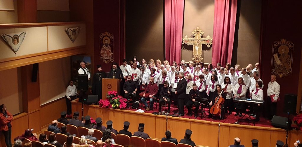 Ευλογία του Ποιμενάρχου ημών κ. Χρυσοστόμου τα μέλη του Σωματείου Ιεροψαλτών Ιωάννης Δαμασκηνός και η Χορωδία Ενηλίκων απέδωσαν μοναδικά τους ύμνους των Χριστουγέννων και ερμήνευσαν κάλαντα από κάθε γωνιά της Ελλάδας.