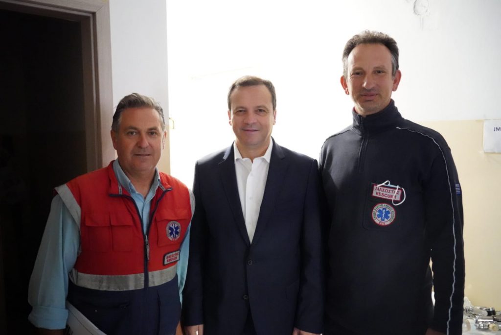 Ακολούθως βρέθηκε στο ΕΚΑΒ Τρικάλων, όπου συναντήθηκε με τους επικεφαλής, Βασίλη Ρακοβίτη και Γιώργο Ζαρογιάννη. «Είστε πάντα μάχιμοι! Πάντα στην πρώτη γραμμή! Το έργο σας ζωτικής σημασίας. Είστε πάντα δίπλα σε όλους!» τόνισε.