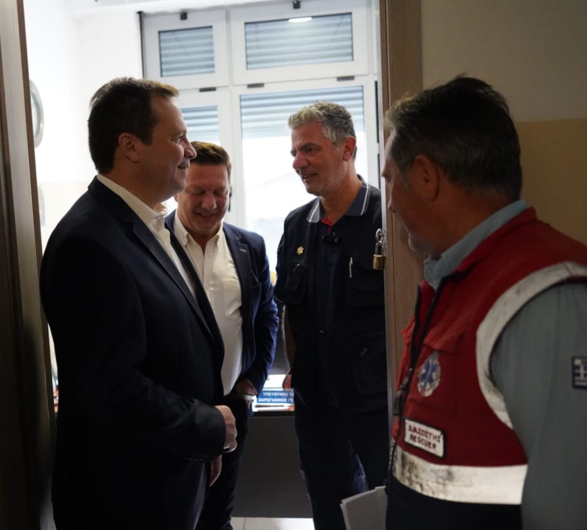 Ακολούθως βρέθηκε στο ΕΚΑΒ Τρικάλων, όπου συναντήθηκε με τους επικεφαλής, Βασίλη Ρακοβίτη και Γιώργο Ζαρογιάννη. «Είστε πάντα μάχιμοι! Πάντα στην πρώτη γραμμή! Το έργο σας ζωτικής σημασίας. Είστε πάντα δίπλα σε όλους!» τόνισε.
