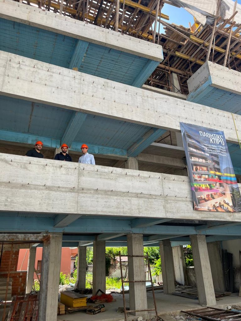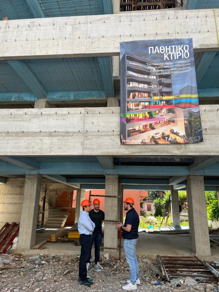 Πρόκειται για πολυκατοικία που κατασκευάζει η εταιρεία TAF PROJECT. Οι υπεύθυνοι μηχανικοί του έργου, Απόστολος και Γιάννης Τάλλαρος, ενημέρωσαν σχετικά τον Κώστα Σκρέκα για τον τρόπο κατασκευής παθητικών κτιρίων, τις διαφορές σε σχέση με τις συμβατικές κατασκευές, τις σχεδόν μηδενικές εκπομπές τέτοιων κτιρίων προς το περιβάλλον και για το χρονοδιάγραμμα παράδοσης.