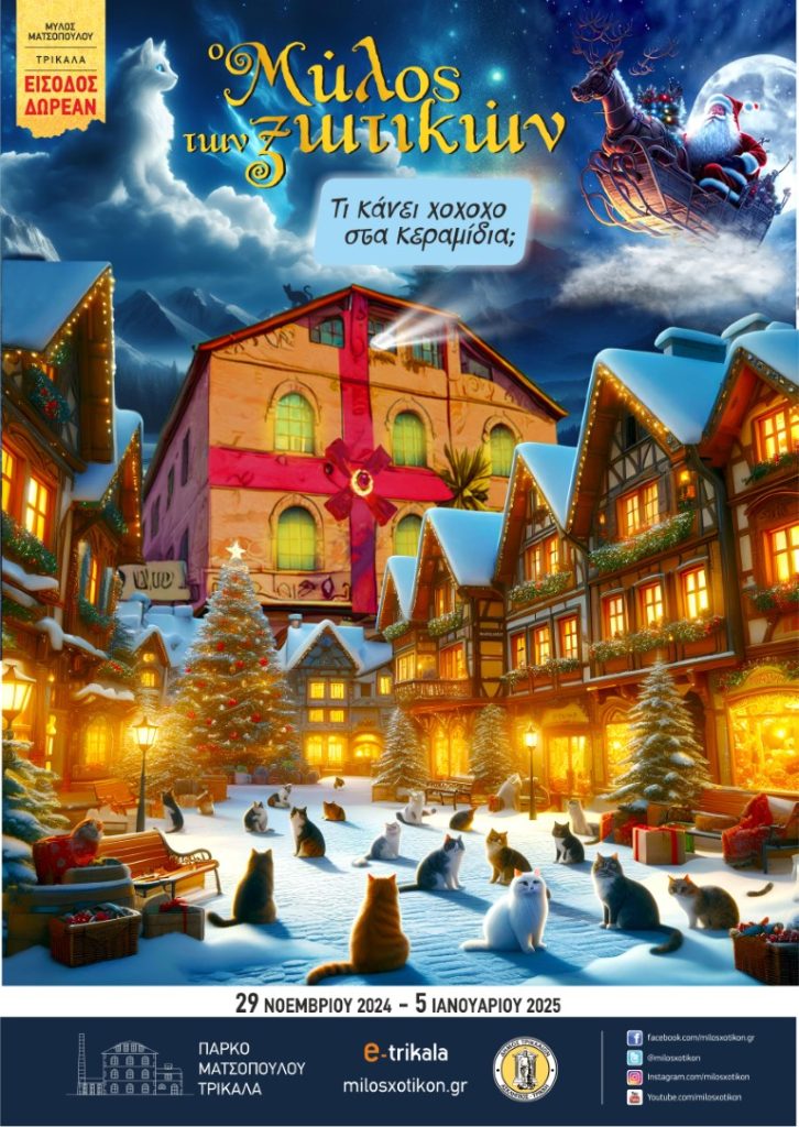 Ακόμη ένα πρωτότυπο θέμα στον 13ο Μύλο των Ξωτικών: «Τι κάνει χο χο χο στα κεραμίδια»! Το θέμα παρουσιάστηκε την Κυριακή 6 Οκτωβρίου 2024 σε συνέντευξη Τύπου, στο θέατρο «Μηχανουργείο» του Μύλου Ματσόπουλου, από τον Δήμαρχο Τρικκαίων και πρόεδρο της e-trikala ΑΕ Νίκο Σακκά και όλη τη μεγάλη δημιουργική ομάδα της διοργάνωσης.