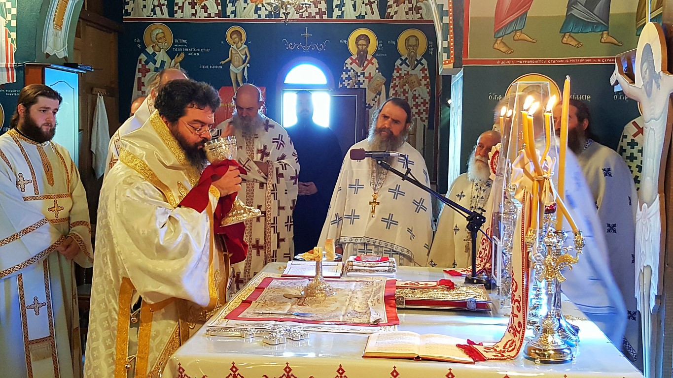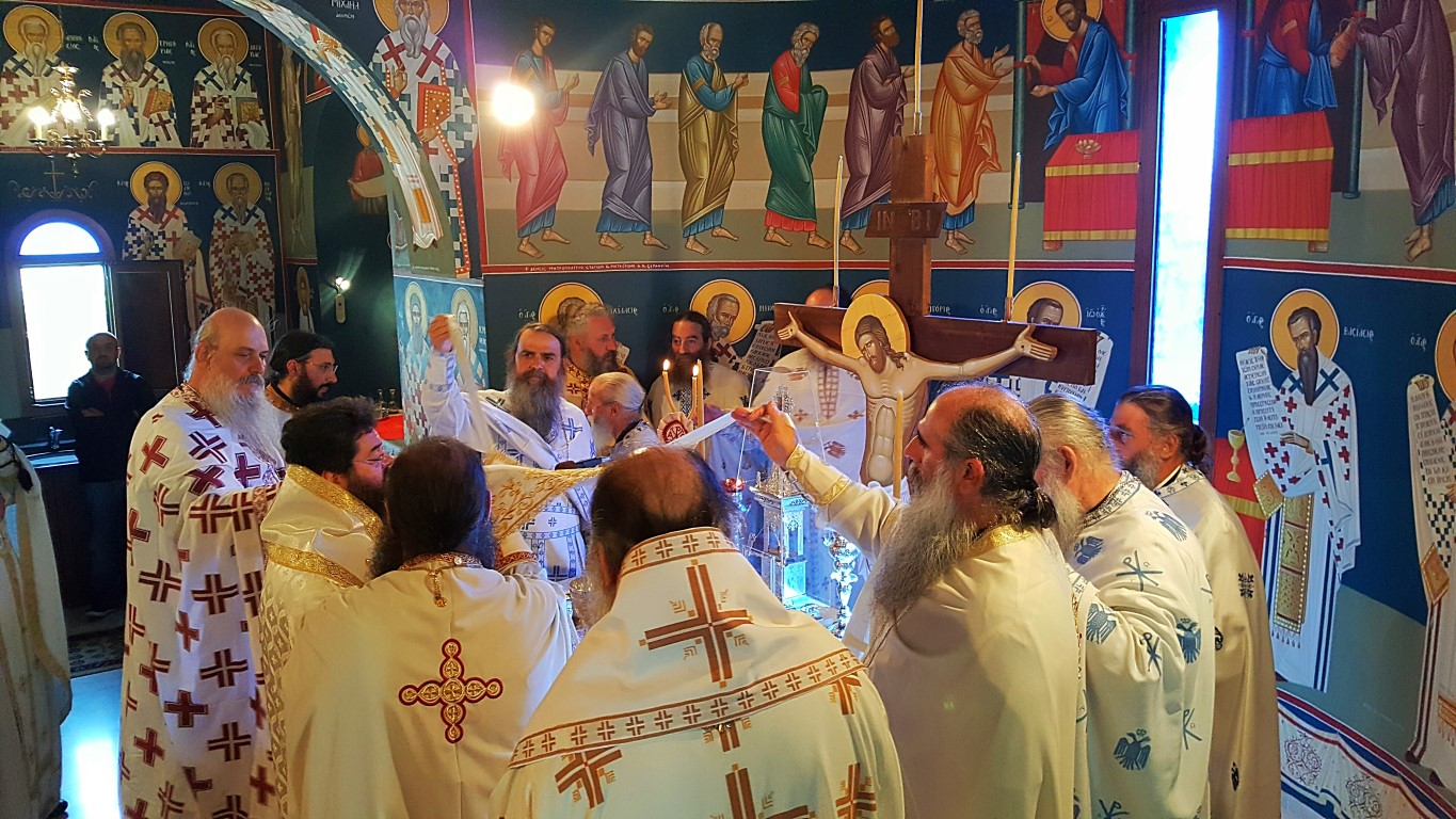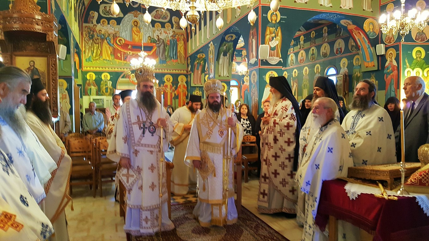 Όπως κατέγραψε το trikalavoice.gr στο καθολικό της Ιεράς Μονής, όπου και αναπαύεται εν Κυρίω ο Μακαριστός Μητροπολίτης Σταγών & Μετεώρων Σεραφείμ, τελέστηκε Αρχιερατικό Συλλείτουργο, υπό των Μητροπολιτών Μαρωνείας & Κομοτηνής κ. Παντελεήμονος και Ελασσόνος κ. Χαρίτωνος, συμμετοχή δε του Πρωτοσυγκέλλου της Μητροπόλεως Σταγών, Ηγούμενου της Μονής Μεγάλου Μετεώρου, Αρχιμανδρίτου Νήφωνος Καψάλη, Ηγουμένων λοιπών Μονών της Μητροπόλεως, Δομέτιου (Αγίας Τριάδας Μετεώρων), Πολυκάρπου (Αγίου Νικολάου Αναπαυσά Μετεώρων), Μακαρίου (Αγίου Νικολάου Σιαμάδων), Ιερέων και Διακόνων.