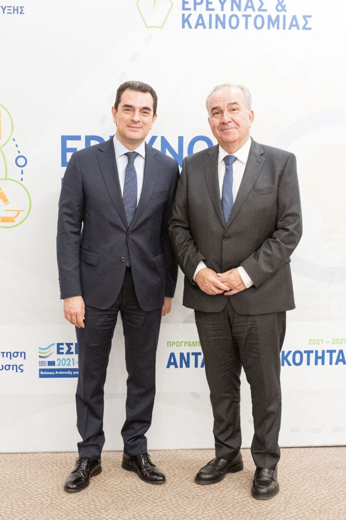 Σ’ αυτό συνδράμουν αποφασιστικά το νέο “Ερευνώ – Καινοτομώ”, αλλά και ο Αναπτυξιακός Νόμος με τα νέα καθεστώτα που μοριοδοτούν τη σύνδεση της έρευνας και της καινοτομίας με την παραγωγή.