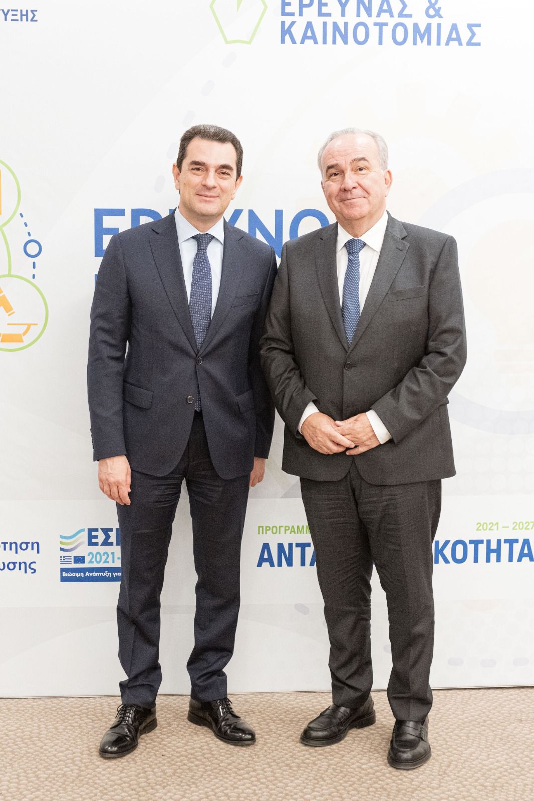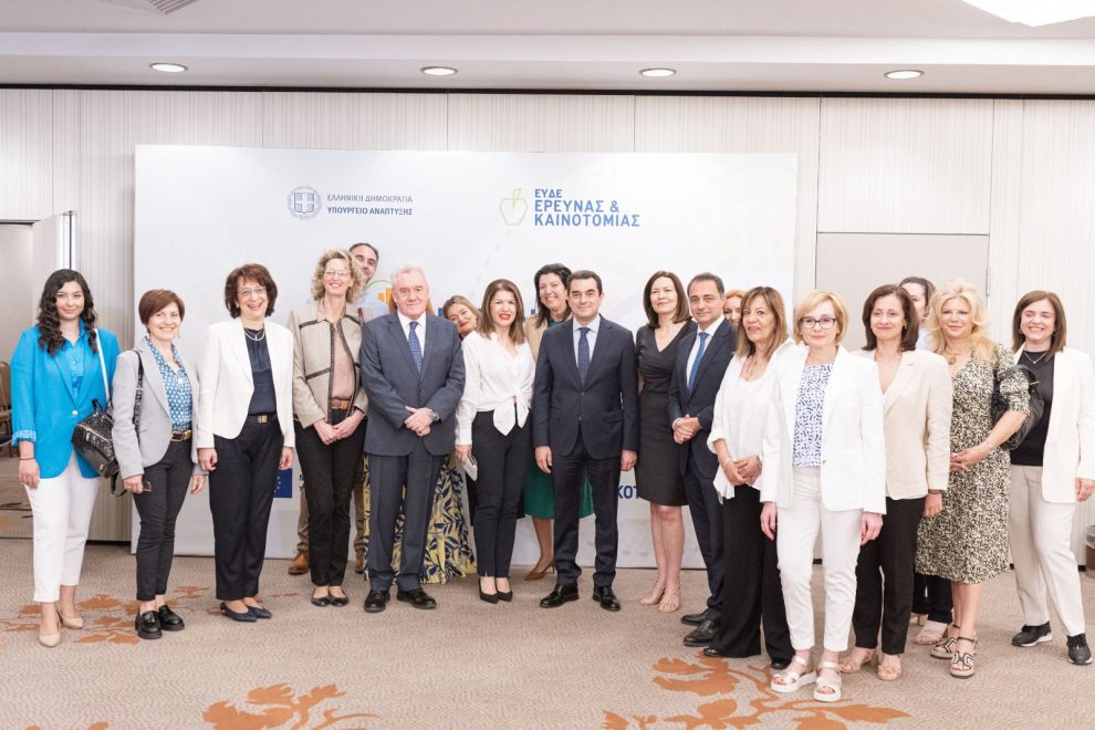 Το νέο πρόγραμμα «Ερευνώ – Καινοτομώ» για τη σύνδεση της έρευνας και της καινοτομίας με τη βιομηχανία και την αγορά παρουσίασε τη Δευτέρα, ο Υπουργός Ανάπτυξης Κώστας Σκρέκας, μαζί με τον Αναπληρωτή Υπουργό Εθνικής Οικονομίας και Οικονομικών Νίκο Παπαθανάση, τον Υφυπουργό Ανάπτυξης Μάξιμο Σενετάκη και τον Γενικό Γραμματέα Έρευνας και Καινοτομίας Αθανάσιο Κυριαζή.