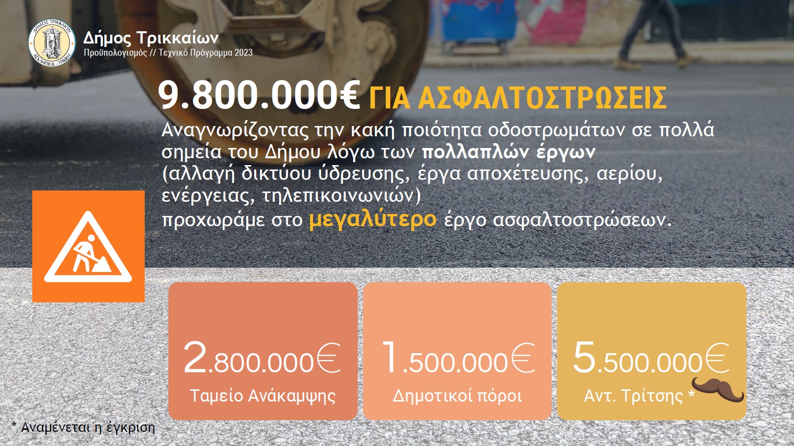 35 εκ. € για έργα δίνει ο Δήμος Τρικκαίων το 2023!!!