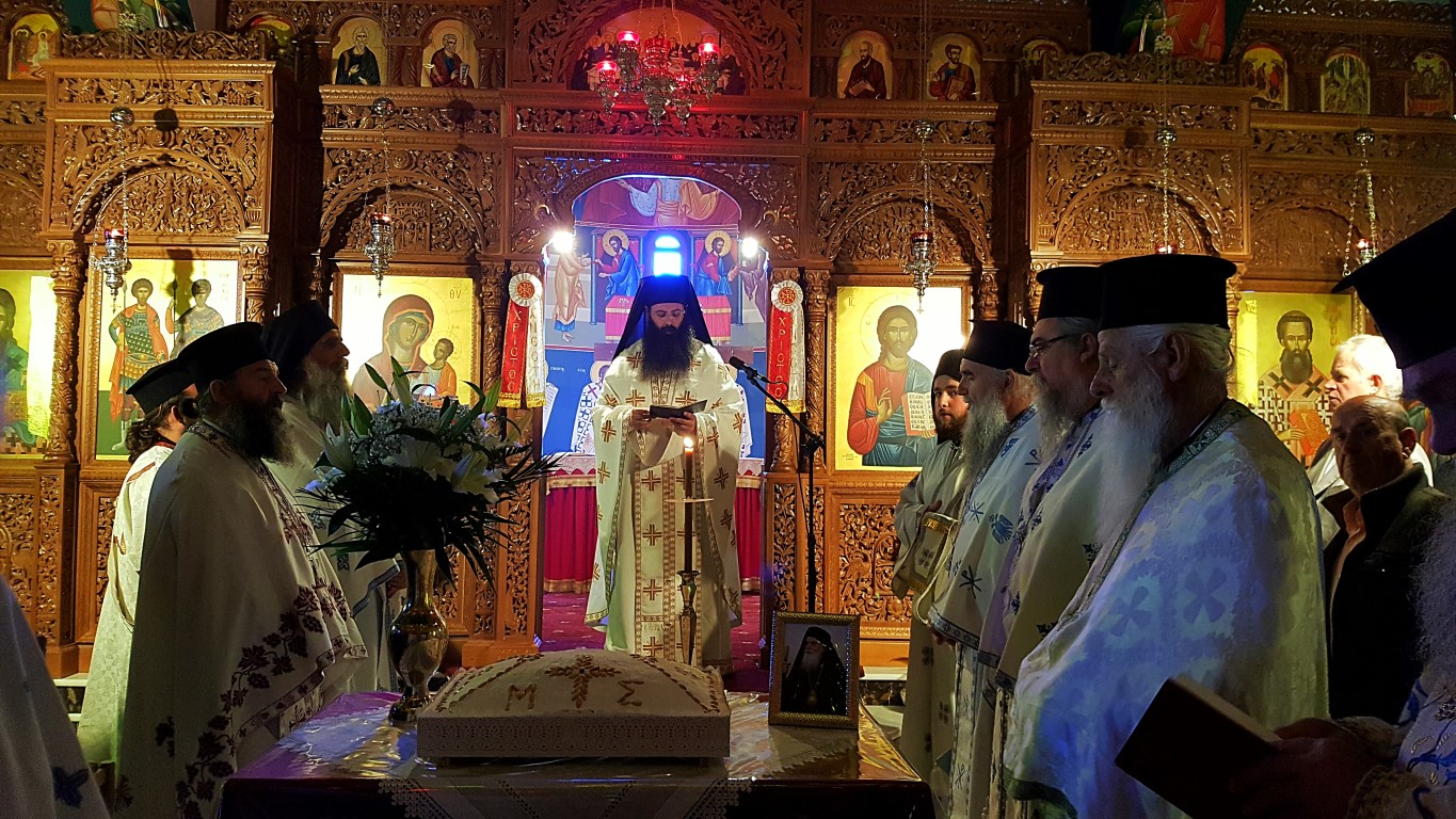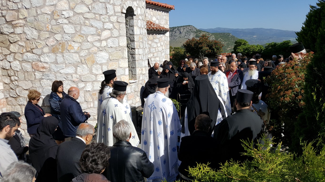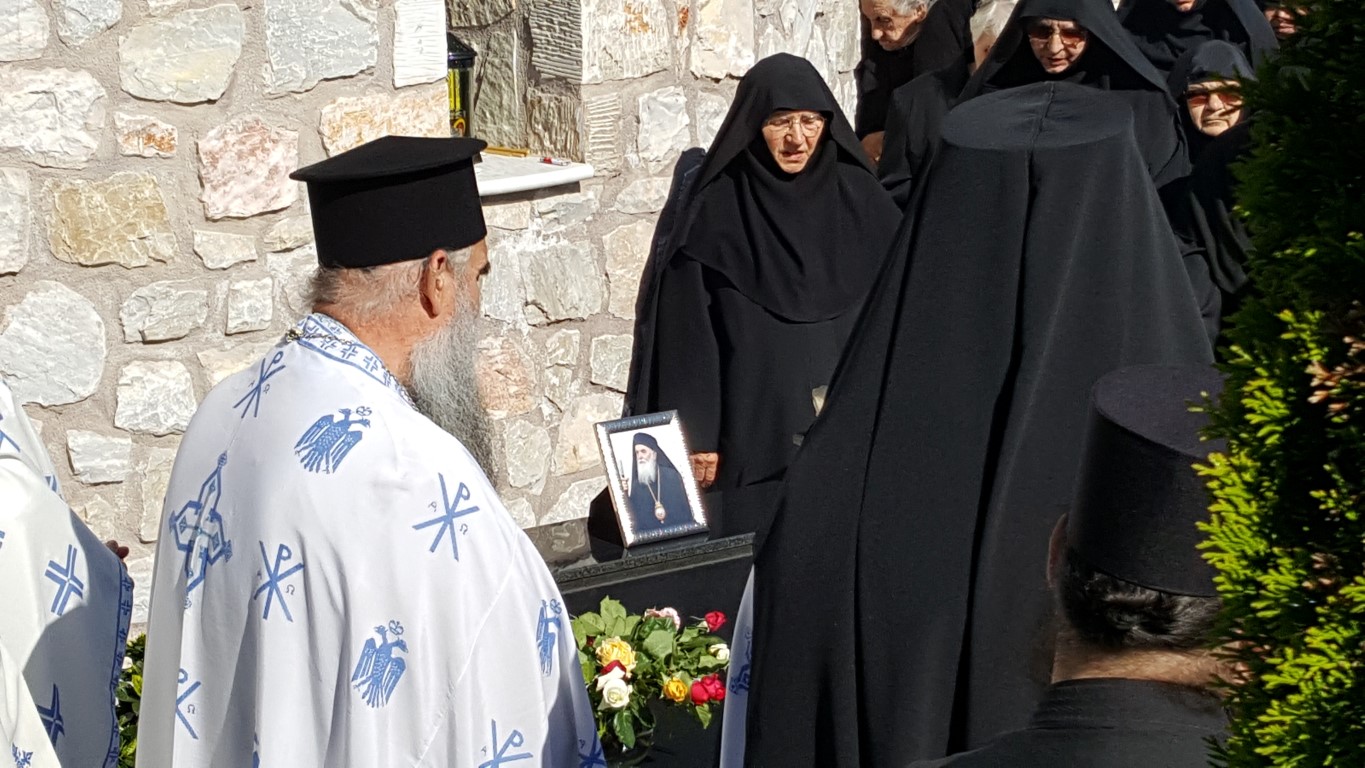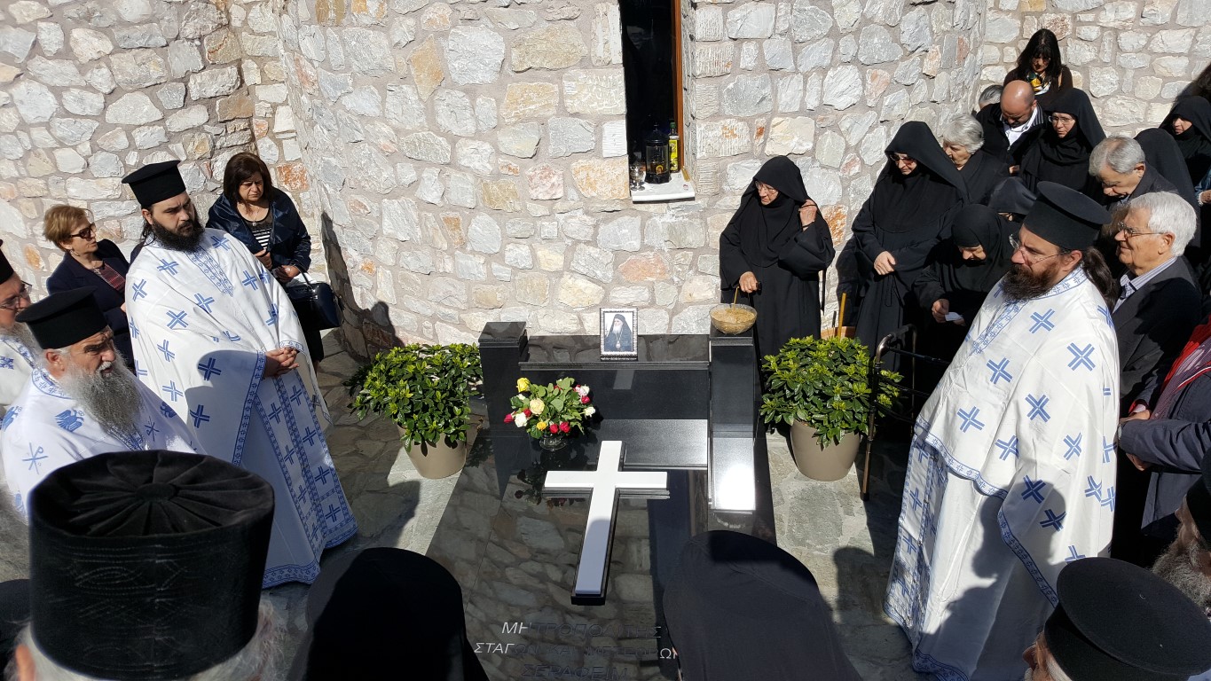 Με το πέρας αυτής τελέστηκε το Ιερό Μνημόσυνο του Μακαριστού Ιεράρχη και ακολούθως Τρισάγιο επί του Μνήματός του, το οποίο βρίσκεται πίσω από το Καθολικό της Μονής.