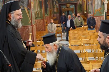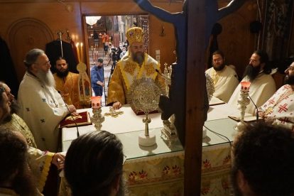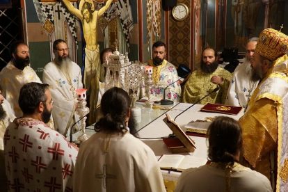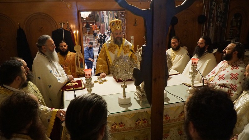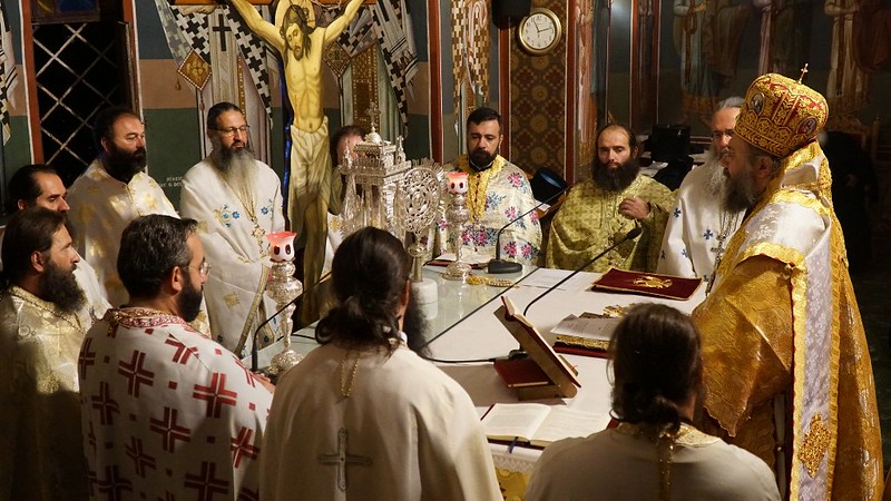 Ο κ. Χρυσόστομος ιερούργησε το βράδυ της Κυριακής προς Δευτέρα στον Ιερό Μητροπολιτικό Ναό Αγίου Νικολάου Τρικάλων, πλαισιούμενος από ιερείς της καθ’ ημάς Μητροπόλεως, καθώς και από αυτές της Λαρίσης και της Θεσσαλονίκης.