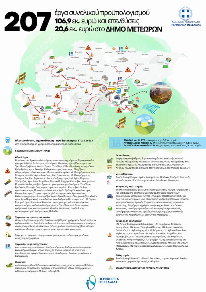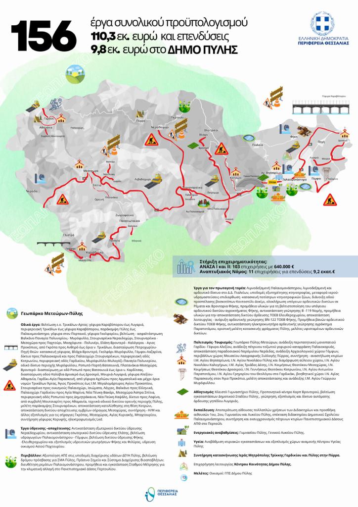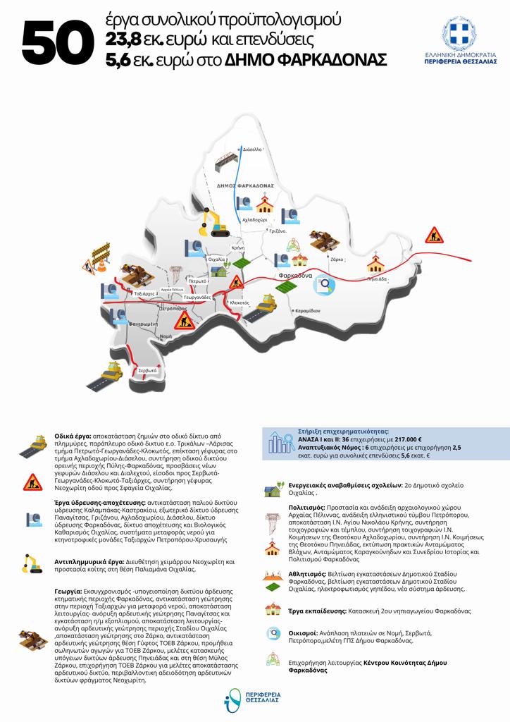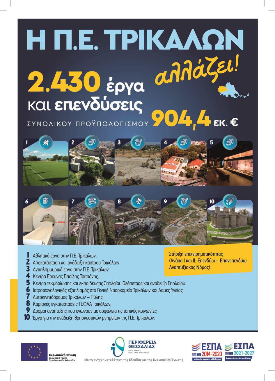 Τεράστιες επενδύσεις, σωστός προγραμματισμός, ολοκλήρωση έργων στην ώρα τους βάσει σωστού σχεδιασμού. Σύμφωνα με τα στοιχεία της Περιφέρειας Θεσσαλίας μέχρι σήμερα έχουν υλοποιηθεί στο νομό μας 2.430 έργα και επενδύσεις, συνολικού προϋπολογισμού 904,4 εκ. €!!!… Μιλάμε για πρόγραμμα μαμούθ, για έργα που βελτιώνουν στην πράξη τις ζωές των ανθρώπων.