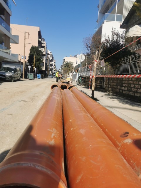 Ολοκληρώνεται ένα ακόμη αντιπλημμυρικό έργο που κατασκευάζει η ΔΕΥΑΤ. Πρόκειται για αντικατάσταση σωλήνων στο δίκτυο ομβρίων  υδάτων, στην οδό Απόλλωνος και στην οδό Πολυκάρπου.