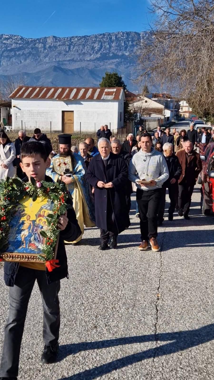Πλήθος πιστών ανήμερα των Θεοφανείων στη Μεγάρχη Τρικάλων.