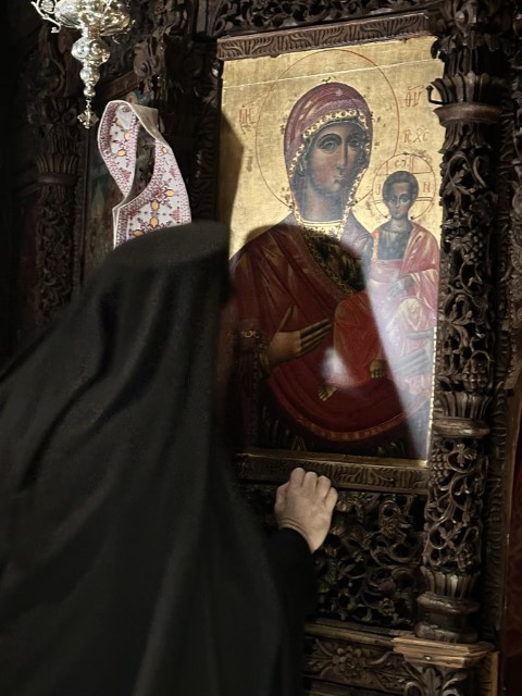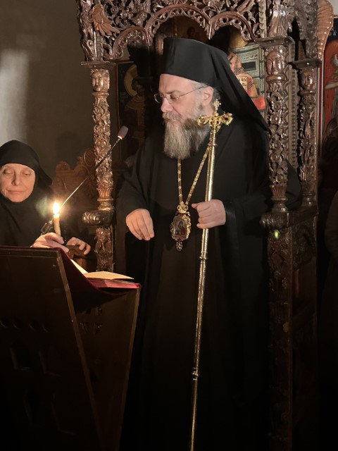 Στο τέλος της Ιεράς Αγρυπνίας, ο Σεβασμιώτατος απηύθυνε θερμές ευχές προς την Καθηγουμένη και πνευματική Μητέρα της Μονής, Θεοφύλακτη Μοναχή, η οποία άγει τα ονομαστήριά της. Εξήρε το πνευματικό της έργο και την πολυετή προσφορά της στη μοναστική αδελφότητα, χαρακτηρίζοντάς την ως ζωντανό παράδειγμα αφοσίωσης, αυταπάρνησης και αγάπης προς τον Θεό και την Εκκλησία.