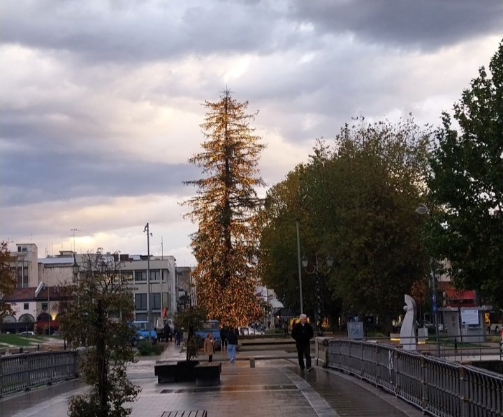 Πρόβα τζενεράλε για το Χριστουγεννιάτικο δέντρο των Τρικάλων το οποίο ήταν φωτισμένο τα ξημερώματα της Τρίτης.