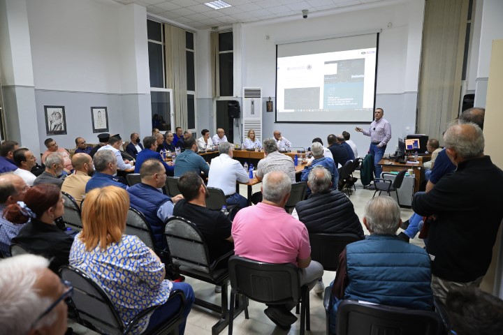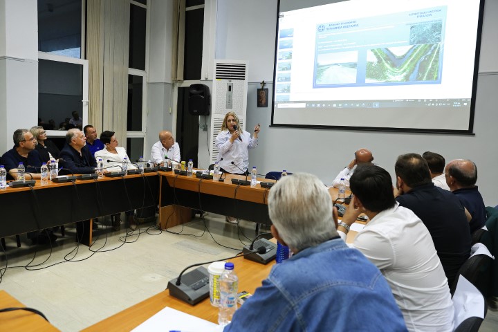Παρουσίασε με σχεδιαγράμματα και πίνακες τις αποκαταστάσεις ζημιών και τα αντιπλημμυρικά έργα (ολοκληρωμένα, σε εξέλιξη και υπό δημοπράτηση), αντιστοίχως τα οδικά έργα (ολοκληρωμένα, σε εξέλιξη και σε διαδικασία δημοπράτησης), τα αρδευτικά έργα, κτιριακά και πολιτιστικά σε εξέλιξη και υπό δημοπράτηση και ολοκλήρωσε την παρουσίασή της με τα έργα υπό υλοποίηση στο δήμο Φαρκαδόνας, που είναι η συντήρηση και επισκευή κατοικιών παλιννοστούντων ομογενών δήμου Φαρκαδόνας προϋπολογισμού 1,3 εκατομμύρια ευρώ, η δημιουργία αθλητικού κέντρου Π/Υ 1,2 εκατομμύρια ευρώ, νέου κλειστού κολυμβητηρίου Π/Υ 1,4 εκατ. ευρώ, ανακαίνιση παιδικού και βρεφονηπιακού σταθμού Π/Υ 900.000€, η προστασία και ανάδειξη του αρχαιολογικού χώρου της αρχαίας Πέλλινας, Π/Υ 1,7 εκατ. και οι εργασίες αποκατάστασης Ιερού Ναού Αγίου Νικολάου Κρήνης Π/Υ 100.000 ευρώ. Ο συνολικός προϋπολογισμός των έργων σε κτίρια και πολιτιστικές υποδομές είναι 6,6 εκατομμύρια. Ακόμη το 2026 δρομολογείται η δημιουργία σύγχρονου αθλητικού κέντρου, π/υ 1,2 εκατ ευρώ.