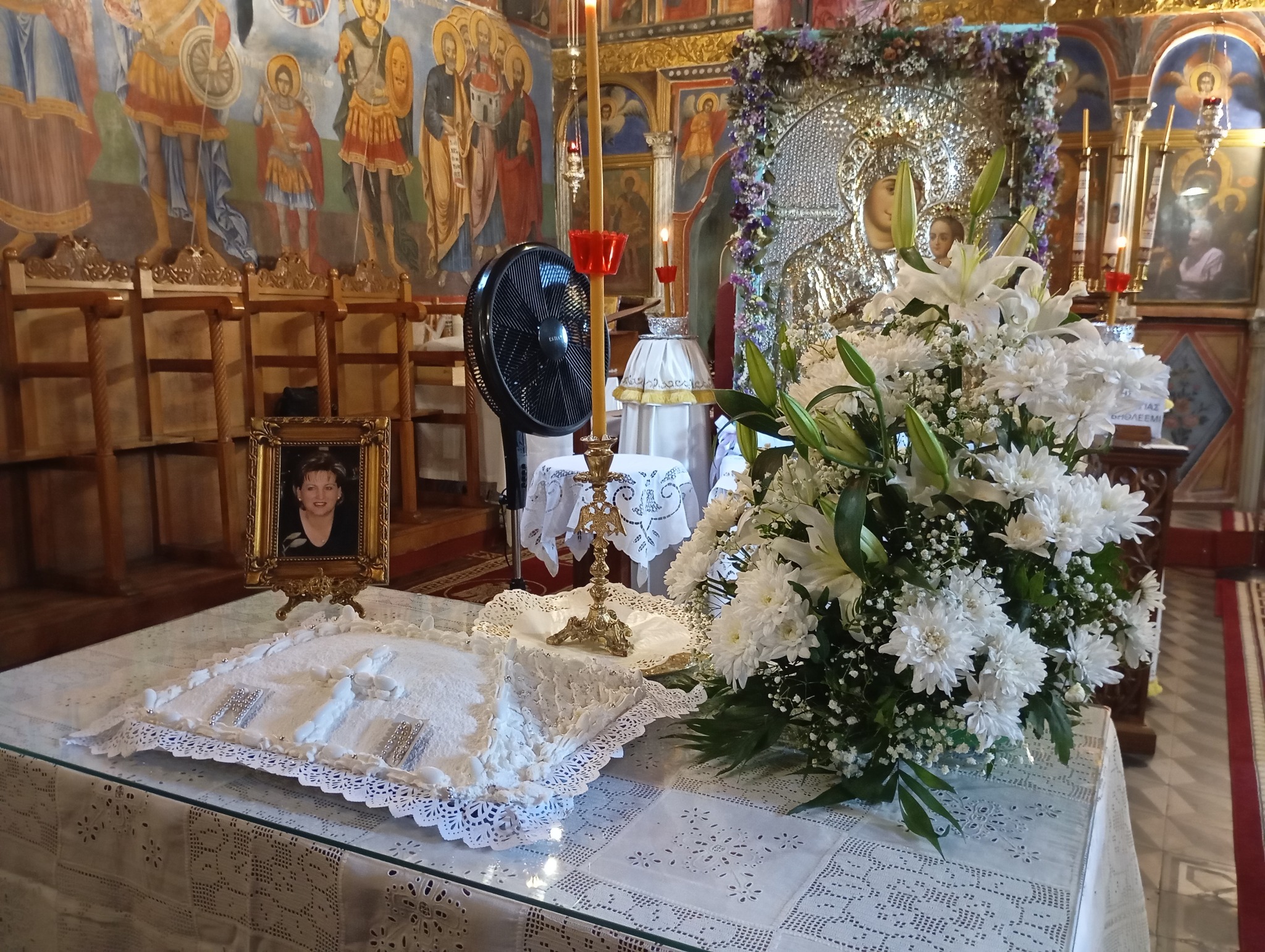 Το Τεσσαρακονθήμερο μνημόσυνο της ευλαβεστάτης γυναικός, Μαρίας Παπαγιάννη-Ντάλλα, μητρός του Υποδιακόνου Βασιλείου Παπαγιάννη, τελέστηκε το πρωί του Σαββάτου στον Ιερό Ναό Αγίου Νικολάου Φήκης.
