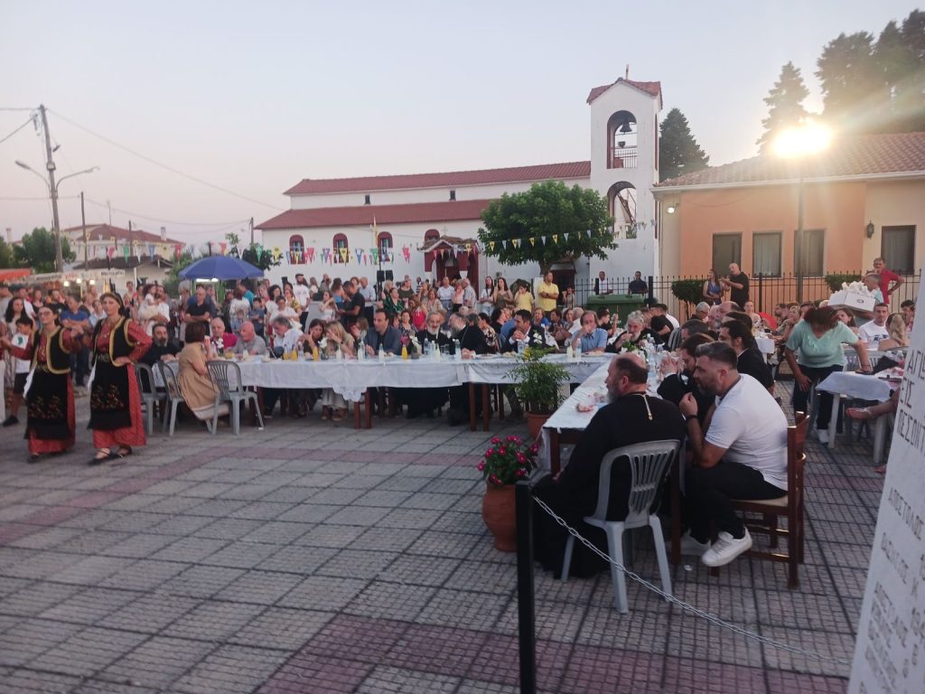 Συγχοροστάτησαν οι Μητροπολίτες Τρίκκης Χρυσόστομος και Καισαρείας Θεοφύλακτος, ενώ με το πέρας του Εσπερινού ο πάντα δραστήριος εφημέριος παπα Βασίλης Σανδραζάμης χόρτασε περί τα 1.500 άτομα με σουβλάκια, ψωμάκια και καρπούζια. Δείτε εικόνες: