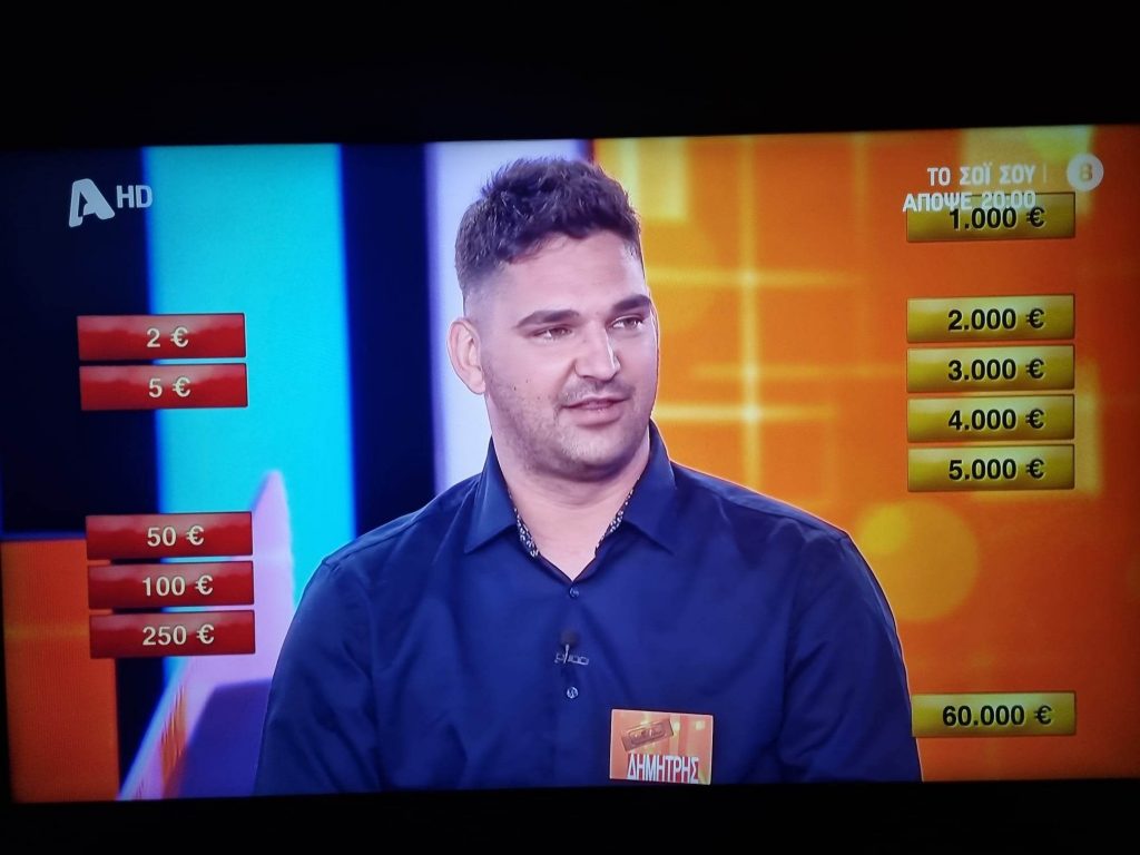 Αν και ξεκίνησε καλά βγάζοντας πολλά μικρά ποσά, “στραβοπάτησε” στη συνέχεια, έβγαλε τα περισσότερα “κίτρινα” από το παιχνίδι και έφτασε να διαπραγματεύεται με τις 5.ο00 €. Κράτησε αρκετά αλλά τελικά έκανε deal για 2.250 € με τον τραπεζίτη!… Σε καλή μεριά…