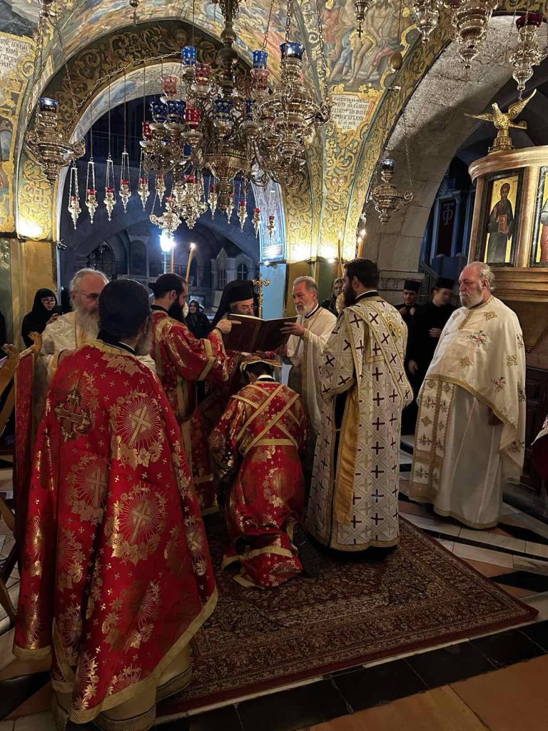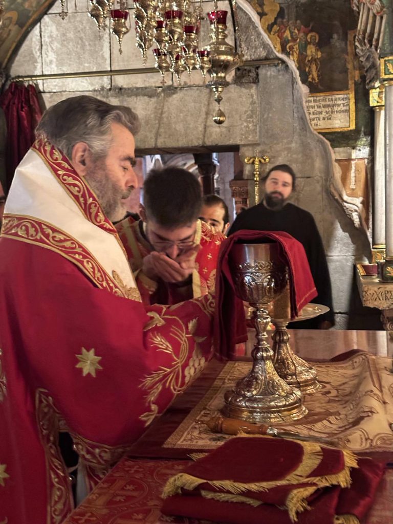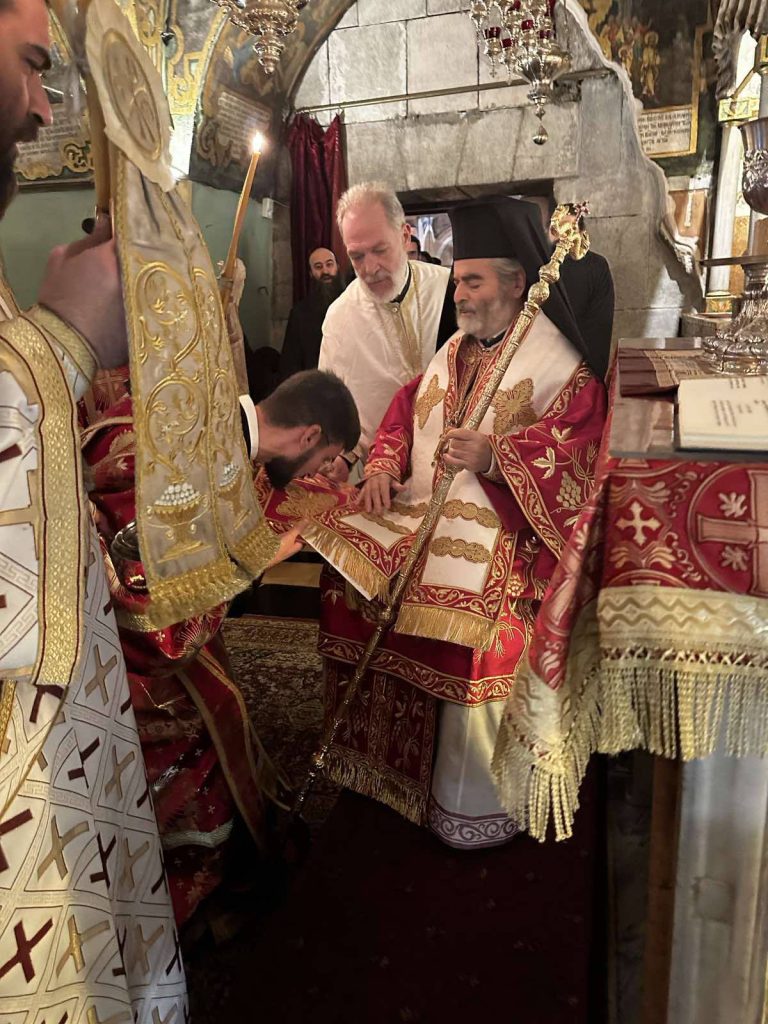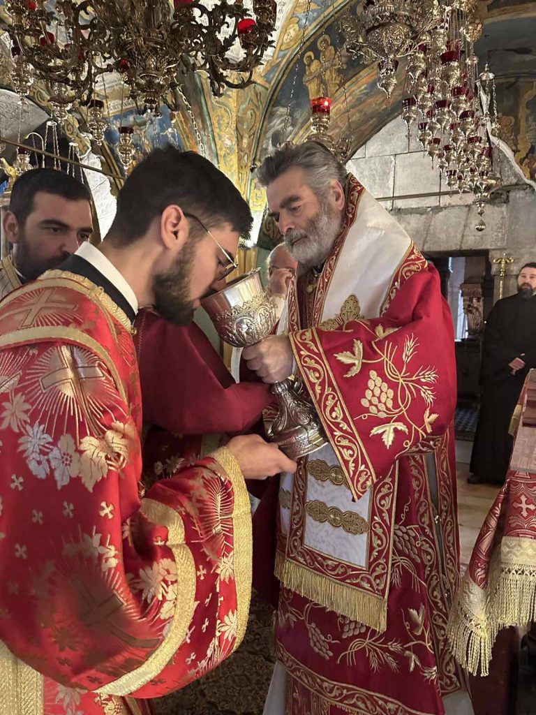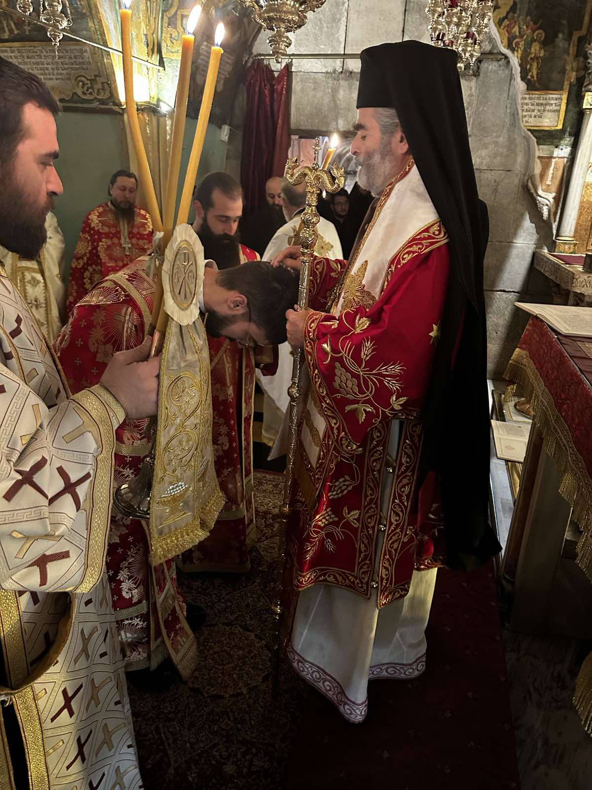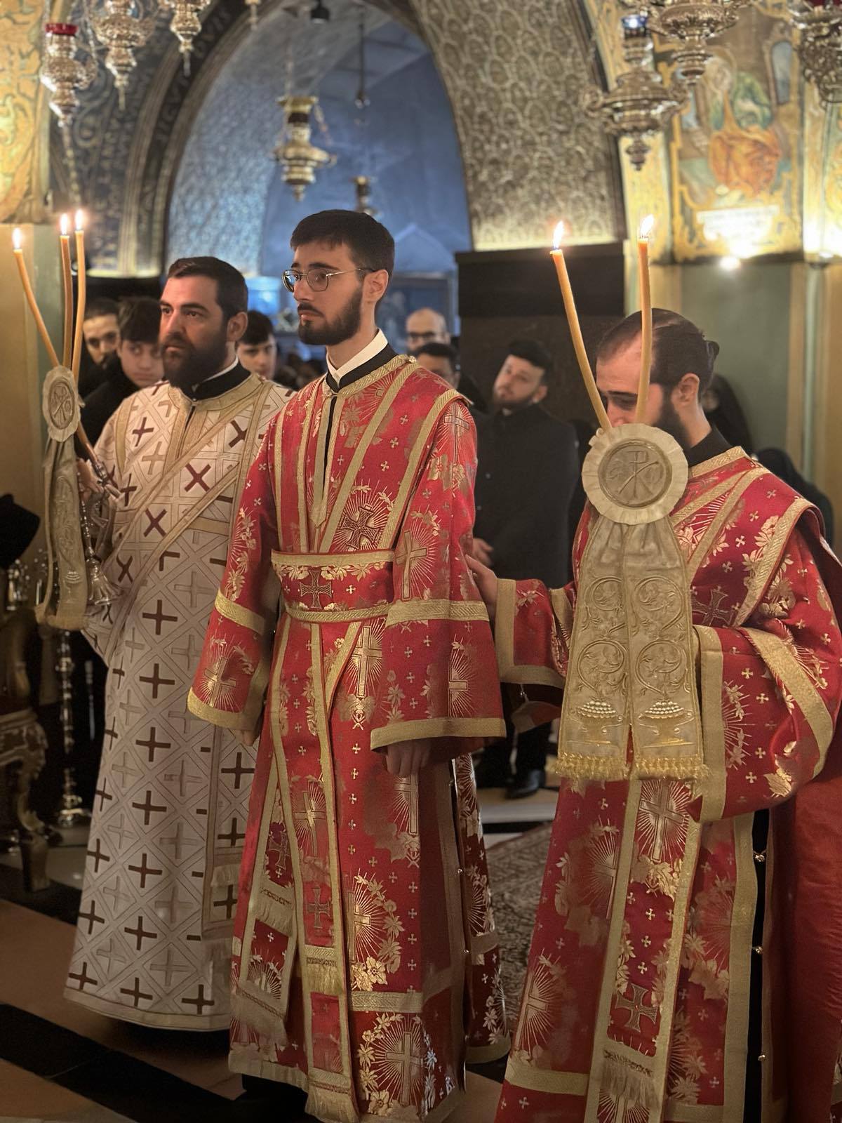Όπως κατέγραψε το trikalavoice.gr το μεσημέρι της Παρασκευής αναγνώστηκε υπέρ του η Ρασοευχή του εγγάμου Διακόνου από τον Πατριάρχη Ιεροσολύμων Θεόφιλο. Το πρωί του Σαββάτου σε συγκινησιακά φορτισμένο κλίμα στον Ναό της Αναστάσεως, δίπλα από τον Πανάγιο Τάφο, παρόντος του Πατριάρχου ο οποίος χοροστάτησε από Θρόνου, ο Ευστάθιος Τσουμάνης έλαβε τον πρώτο βαθμό ιεροσύνης, αυτόν του Διακόνου, από τα χέρια του Αρχιεπισκόπου Γεράσων Θεοφάνη.