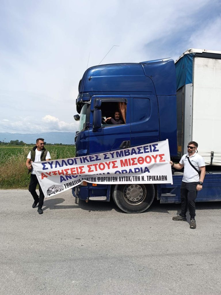 Παράσταση διαμαρτυρίας πραγματοποίησε το Σωματείο Οδηγών Φορτηγών ν. Τρικάλων με την στήριξη του Εργατικού Κέντρου Τρικάλων έξω από τις αποθήκες του LIDL στο Μεγαλοχώρι Τρικάλων διαμαρτυρόμενοι απέναντι στις μεταφορικές εταιρείες που συνεργάζονται με το LIDL για τα παρακάτω ζητήματα: