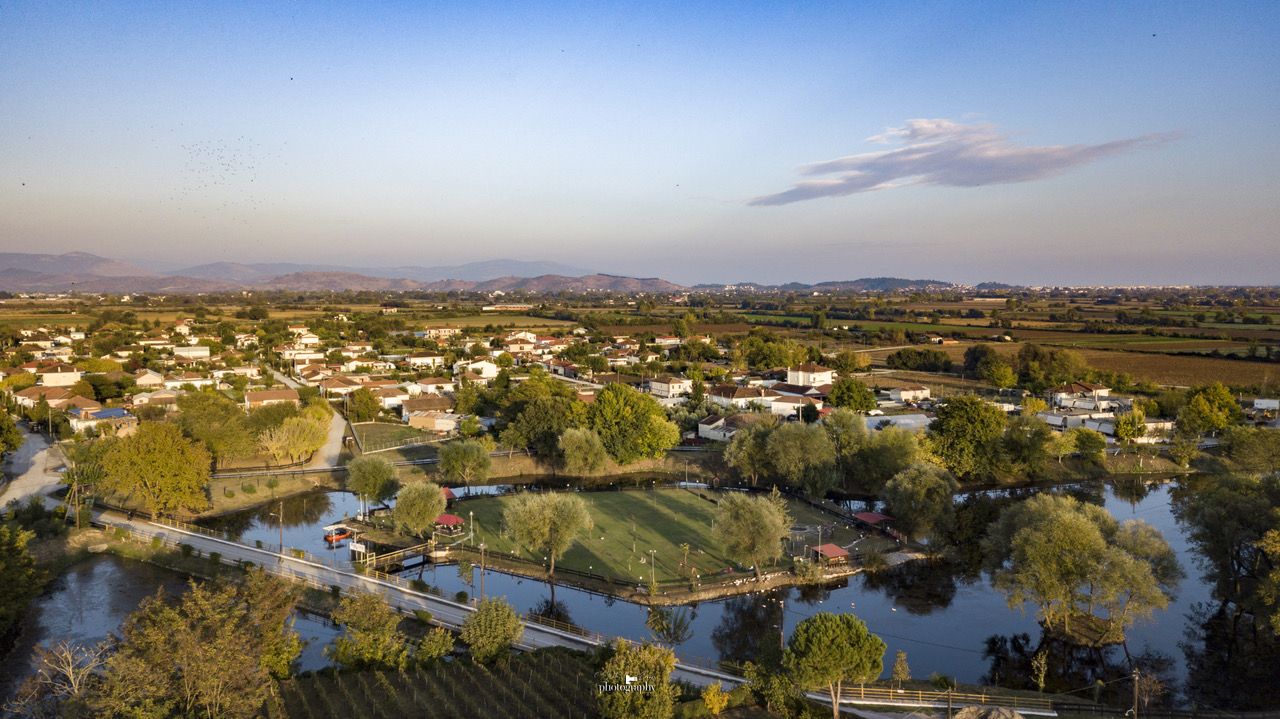 Φαίνεται καθαρά το καταπράσινο νησάκι, αλλά και ο παραλίμνιος χώρος που μοιάζει… ονειρεμένος.