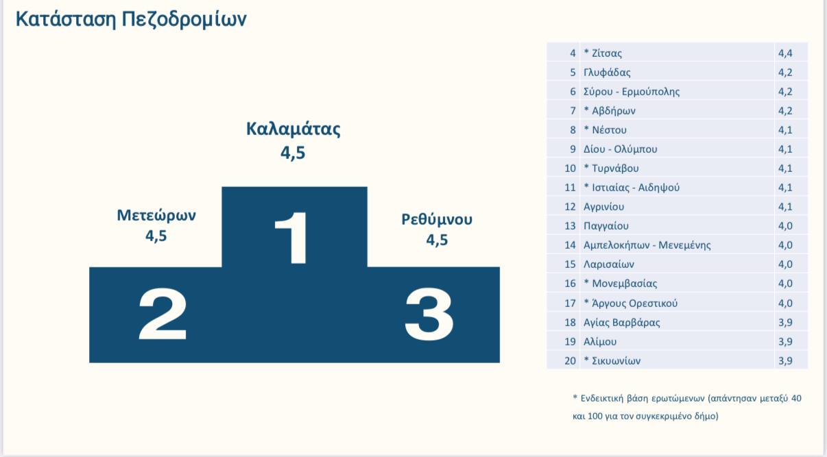 -2η θέση στην καθαριότητα των πεζοδρομίων
