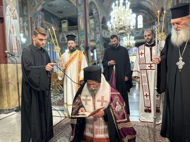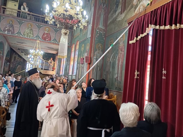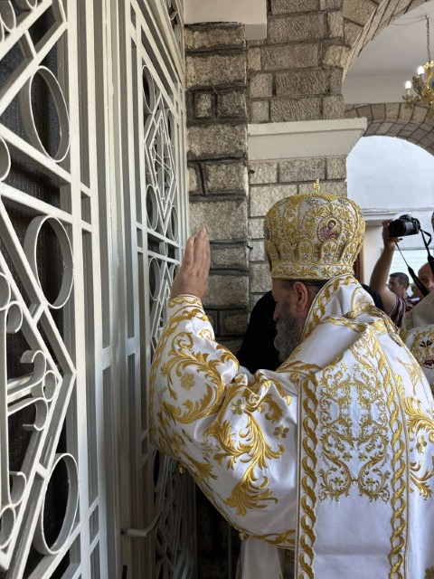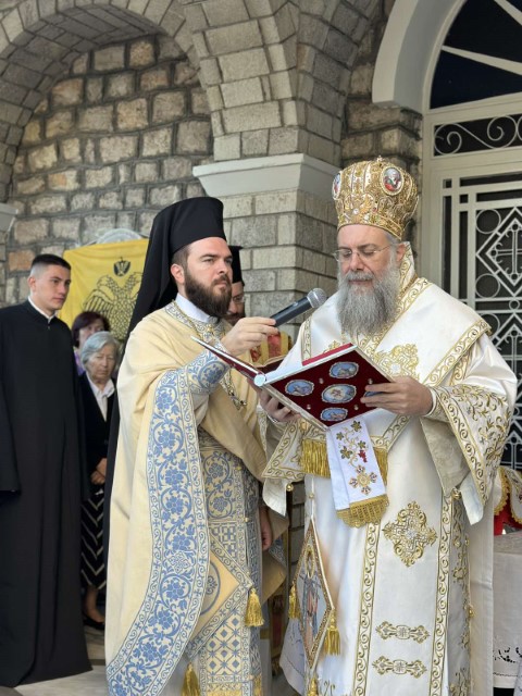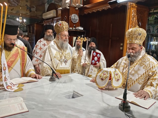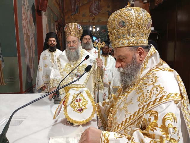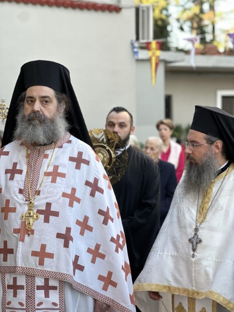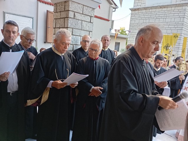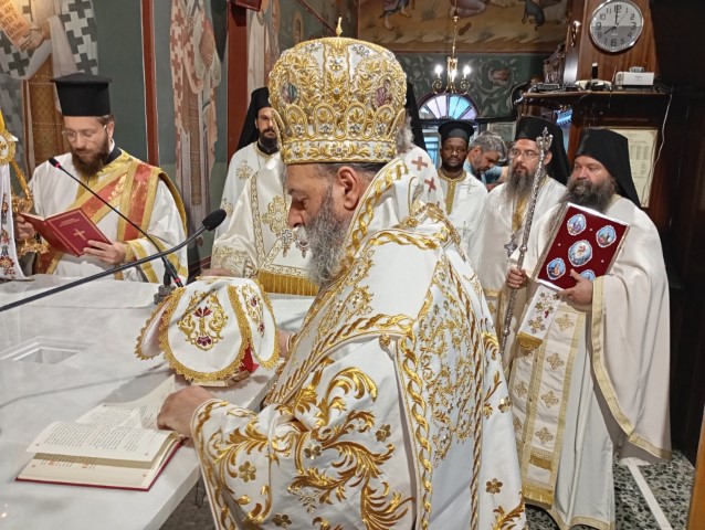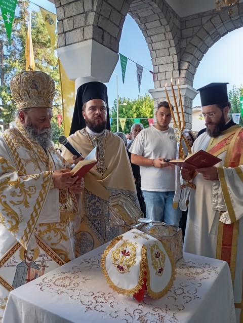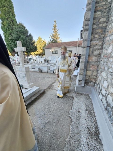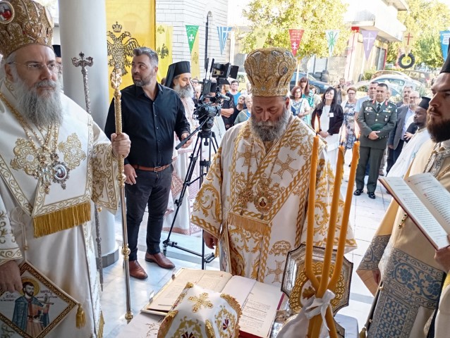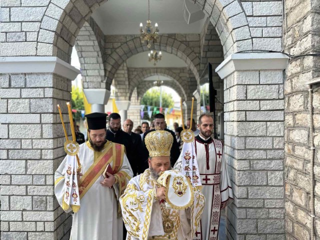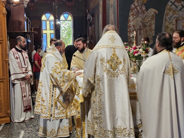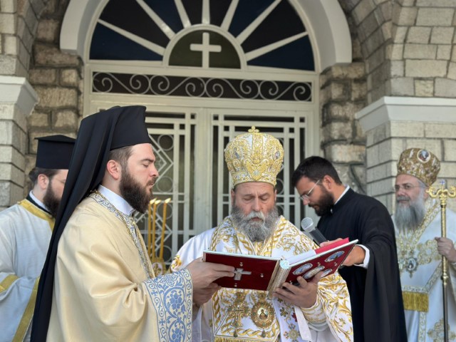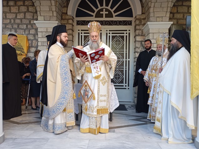 Στο τέλος της Θείας Λειτουργίας ο Σεβασμιώτατος Ποιμενάρχης μας απηύθυνε πατρικό λόγο προς το πολυπληθές εκκλησίασμα, εκφράζοντας την ευγνωμοσύνη του προς όλους όσοι συνέβαλαν στην ανοικοδόμηση και ολοκλήρωση του Ναού, καθώς και προς τους πιστούς που συμμετείχαν με κατάνυξη στις Ιερές Ακολουθίες.