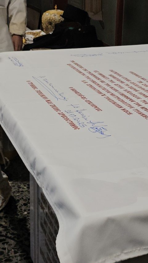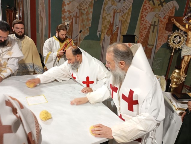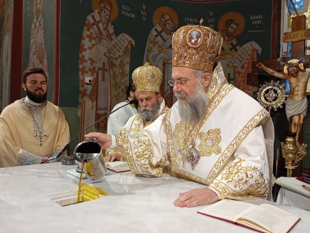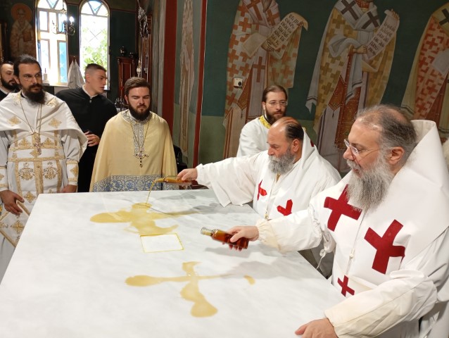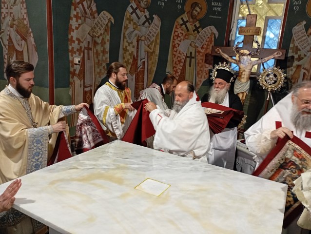 Είδαμε όλοι την ιερή τελετή: την τοποθέτηση των ιερών λειψάνων στην αγία τράπεζα, το άλειμμα με το άγιο μύρο, την κάλυψή της με τα νέα καταστόλιστα ιερά καλύμματα. Από αυτήν την ώρα ο ναός αυτός είναι καθαγιασμένος για πάντα. Εδώ πλέον θα τελείται η Θεία Ευχαριστία, θα αναβλύζει η χάρη του Θεού και θα αγιάζονται όσοι με πίστη προσέρχονται.