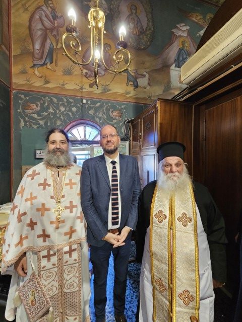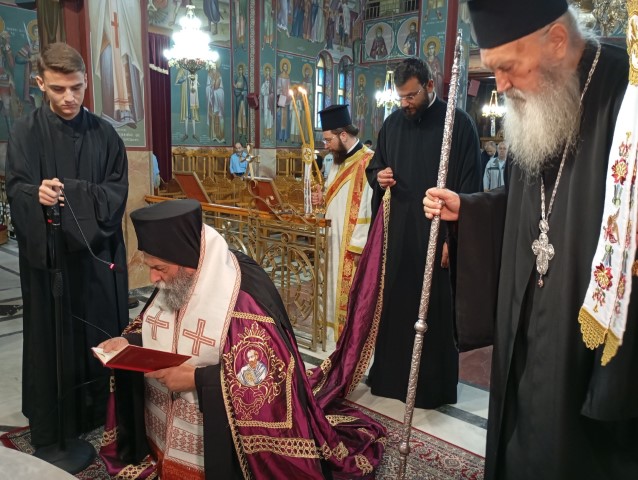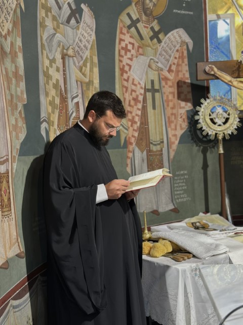 Ιδιαίτερη μνεία οφείλω στον προϊστάμενο του ναού, τον πρωτοπρεσβύτερο Δημήτριο Κυρίτση. Ο π. Δημήτριος δεν είναι απλώς ένας εφημέριος, αλλά ένας αληθινός αγωνιστής και εργάτης του Ευαγγελίου. Με άοκνο ζήλο εργάστηκε επί μήνες για να είναι σήμερα ο ναός έτοιμος, ευπρεπισμένος, λαμπρός. Μερίμνησε να αγοραστούν νέα ιερά καλύμματα, να στολιστεί η αγία τράπεζα με κεντημένη στόλη, να τοποθετηθούν νέες ποδιές στο τέμπλο, να καθαριστούν και να γυαλιστούν τα πάντα. Οργάνωσε επιτροπές, συντόνισε συνεργάτες, φρόντισε για κάθε λεπτομέρεια, για να είναι όλα άρτια. Και δεν έμεινε μόνο εκεί· θα προσφέρει μάλιστα και ένα σημαντικό ποσό για την κατασκευή της νέας εικόνας της Παναγίας της Τριχερούσας, εις μνήμην της μακαριστής πρεσβυτέρας του Ελένης. Η πράξη αυτή είναι μνημείο πίστεως, αγάπης και ευγνωμοσύνης.