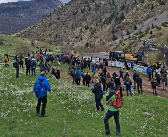 “Η κινητοποίηση ξεκίνησε με σύντομη ενημέρωση στην πλατεία του χωριού και συνεχίστηκε με πορεία προς τη θέση «Ελατάκια», την περιοχή που κινδυνεύει να καταστραφεί, με ενδιάμεση στάση στον εργοταξιακό χώρο, όπου είναι παρκαρισμένα βαρέα μηχανήματα εντός δασικής έκτασης.