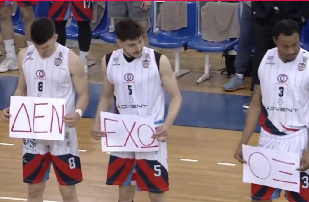 Στην αναμέτρηση των Τρικάλων με τον Ηρακλή, οι παίκτες της γηπεδούχου ομάδας έκαναν μια ξεχωριστή κίνηση λίγο πριν το τζάμπολ, καθώς κράτησαν χαρτιά που σχημάτιζαν την φράση “Δεν έχω οξυγόνο”, στέλνοντας το μήνυμά τους για την τραγωδία, από την οποία συμπληρώθηκαν δύο χρόνια την Παρασκευή (28/2).