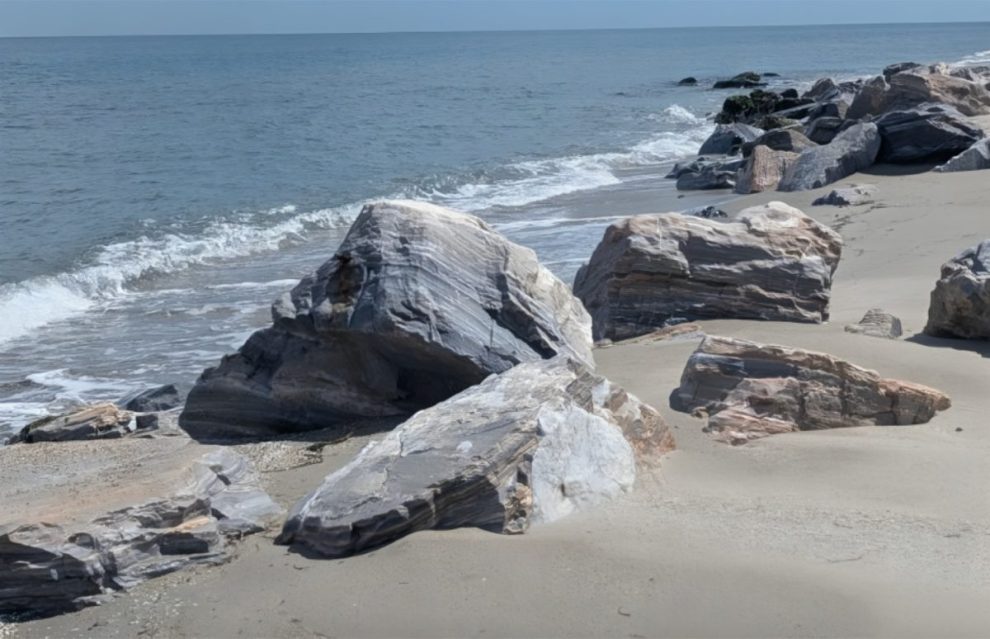 Απίστευτες οι εικόνες σε μια από τις πιο αμμουδερές παραλίες του νομού Λάρισας, όπου …ξεφύτρωσαν ξαφνικά βράχια και θυμίζουν περισσότερο τον Ρακοπόταμο του δήμου Αγιάς, παρά τα Μεσάγκαλα του δήμου Τεμπών.
