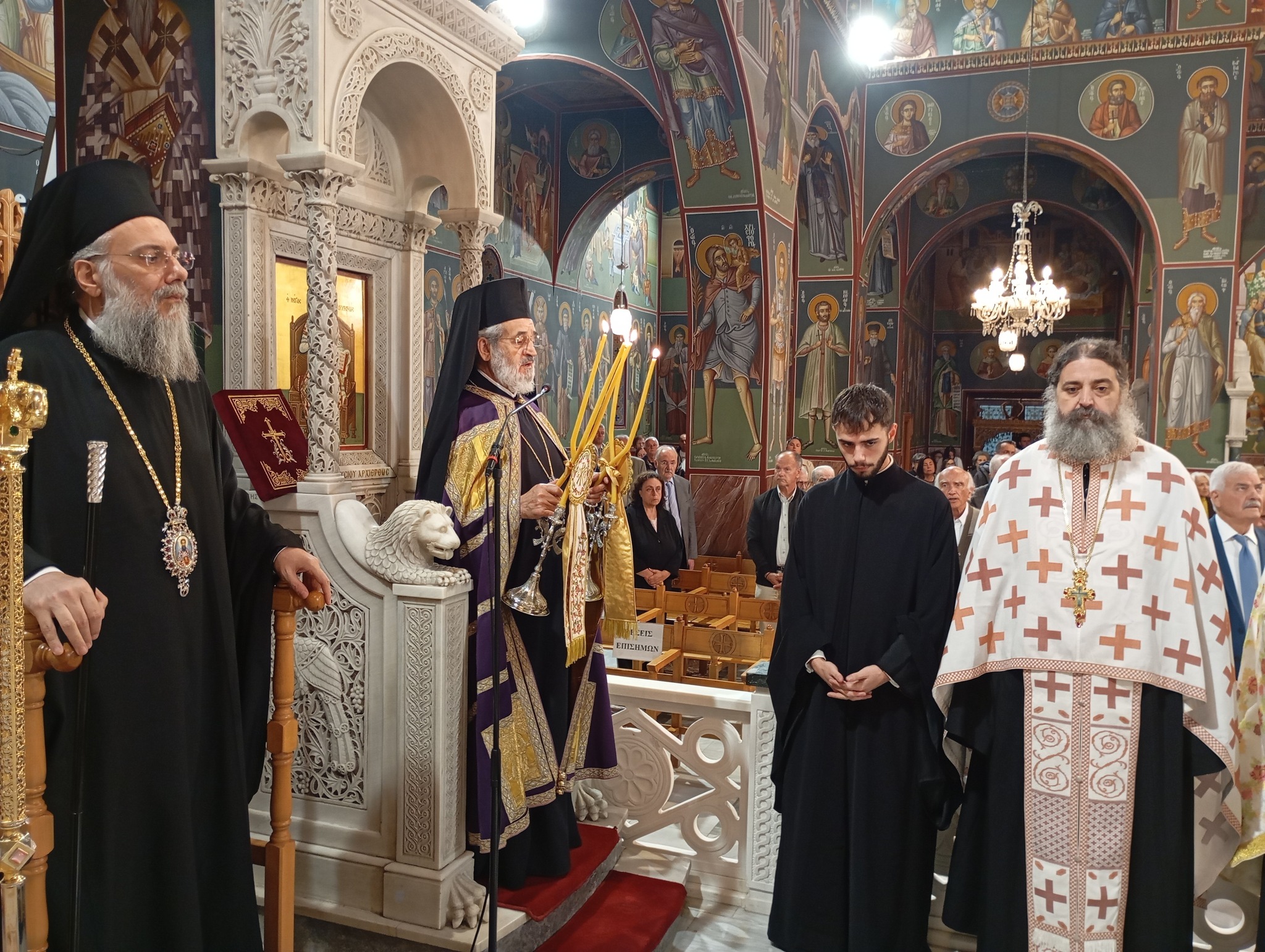 Ακολούθως τελέστηκε Μέγας Αρχιερατικός Εσπερινός χοροστατούντος του Μητροπολίτου Καισαρείας, Γέροντος Θεοφυλάκτου, συγχοροστατούντος δε του Κυριάρχου Ποιμενάρχου, του Τρίκκης Χρυσοστόμου.