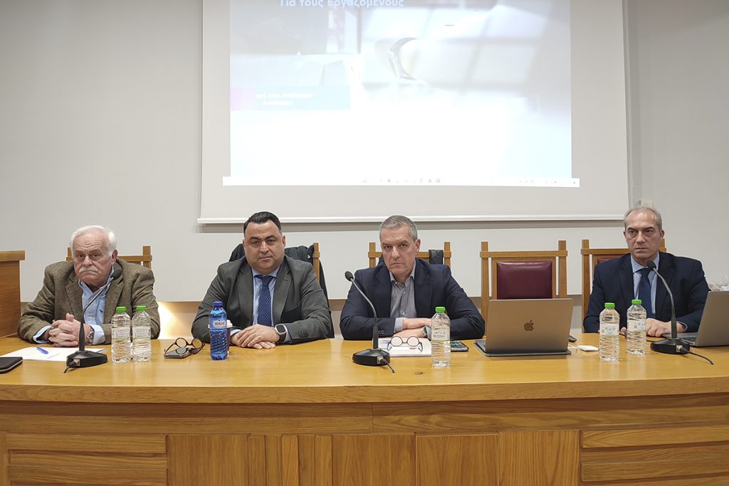 Στην κατάμεστη αίθουσα του Επιμελητηρίου, με έντονο το ενδιαφέρον των συμμετεχόντων επί του νέου πλαισίου για το ψηφιακό ωράριο και την ψηφιακή κάρτα εργασίας, οι Πρόεδροι των φορέων κ.κ. Παπαευθυμίου Κωνσταντίνος, Γρηγορίου Θωμάς και Αγγελάκης Βαγγέλης ευχαρίστησαν τους κυρίους Φραγκιαδάκη Νικόλαο, Σύμβουλο εργασιακών θεμάτων του Ομίλου SOFTONE, Λογιστή – Φοροτεχνικό και Ανδρέου Φίλιππο Διευθυντή της PROSVASIS Βορείου Ελλάδος για την καθοριστική συμβολή τους στην εμπεριστατωμένη ενημέρωση των επιχειρηματιών και επαγγελματιών, απαντώντας σε πλήθος ερωτήσεων επί της εφαρμογής του κανονιστικού πλαισίου, τις υποχρεώσεις των εργοδοτών και του απασχολούμενου προσωπικού και των λύσεων επί των προκλήσεων που θα αντιμετωπίσουν για την αποφυγή προστίμων που θα είναι επιζήμια για τις επιχειρήσεις.