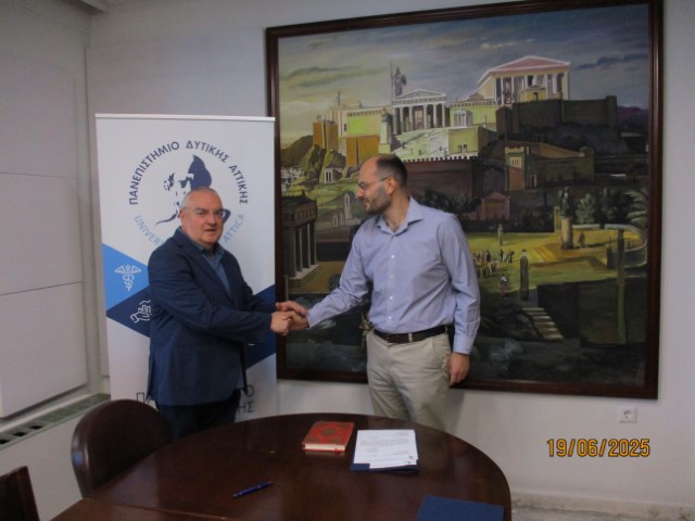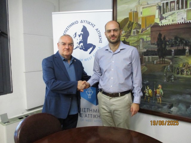 O Τρικαλινός επιστήμονας, ο οποίος διακρίνεται στη φωτογραφία με τον Πρύτανη του Πανεπιστημίου Καθηγητή Παναγιώτη Καλδή, ανέλαβε καθήκοντα με γνωστικό αντικείμενο Κατασκευαστική Αξιοπιστία Ναυπηγικών Κατασκευών.