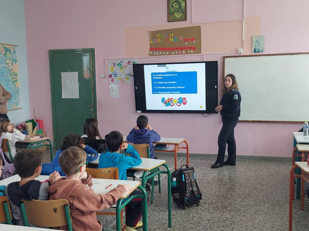 Αρχικά, η ενημέρωση πραγματοποιήθηκε από την κ. Παπαχαρίση αστυνόμο Β της Τροχαίας. Τα παιδιά είχαν την ευκαιρία να παρακολουθήσουν μια εξαιρετική παρουσίαση για τον κώδικα οδικής κυκλοφορίας, τους κανόνες της οδικής συμπεριφοράς και τη σημασία να τους ακολουθούν στην καθημερινή τους ζωή.