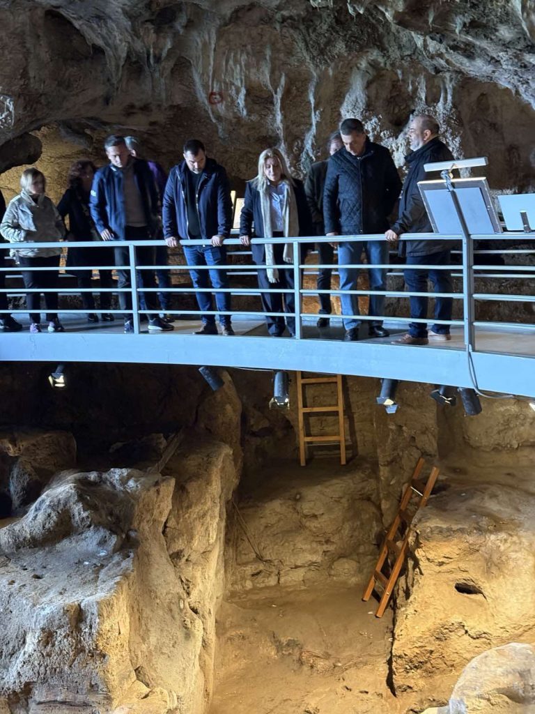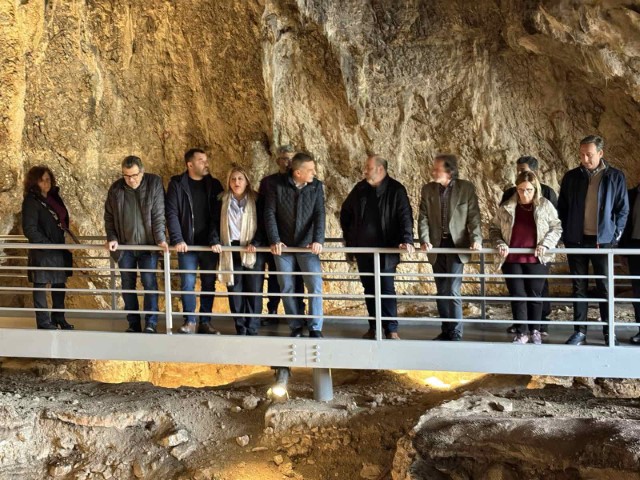 Τον Περιφερειάρχη υποδέχτηκε ο Δήμαρχος Μετεώρων Λευτέρης Αβραμόπουλος και ξεναγήθηκε από τον υπεύθυνο Αρχαιολόγο της Εφορείας Παλαιοανθρωπολογίας – Σπηλαιολογίας, Μιχαήλ Κοντό, τόσο στο Σπήλαιο, όσο και στο Μουσείο όπου ενημερώθηκε για την επιστημονική σπουδαιότητα του καθώς πρόκειται για ένα από τα ελάχιστα Σπήλαια στην Ελλάδα για την προϊστορία του Ελλαδικού χώρου με μεγάλο εύρος επιχώσεων που καλύπτουν την εξέλιξη των ανθρώπων σε μια περίοδο πολύ καθοριστική για την εξέλιξη του, τη μετάβασή του από τον Νεάτερνταλ στο Χόμο Σάπιενς. Πολύ σημαντικά είναι, επίσης, τα ανθρωπολογικά κατάλοιπα, με τα ανθρώπινα αποτυπώματα να αποτελούν ένα από τα πιο εντυπωσιακά ευρήματα των ανασκαφών στο σπήλαιο ως ζωντανή μαρτυρία της κατοίκησης του σε μακρινές εποχές, καθώς και τα σκελετικά κατάλοιπα ζώων που ποικίλουν ανάλογα με την εποχή.