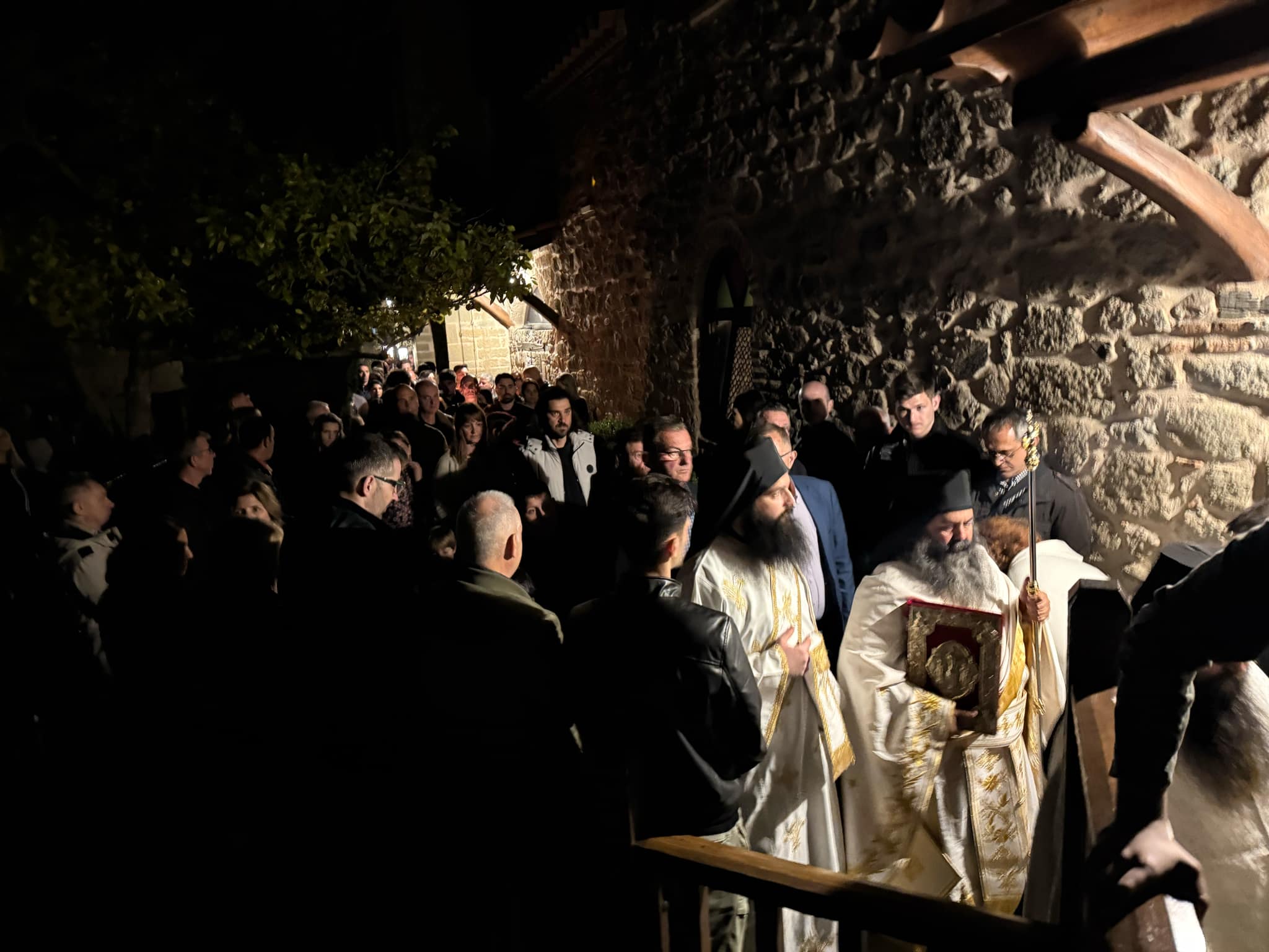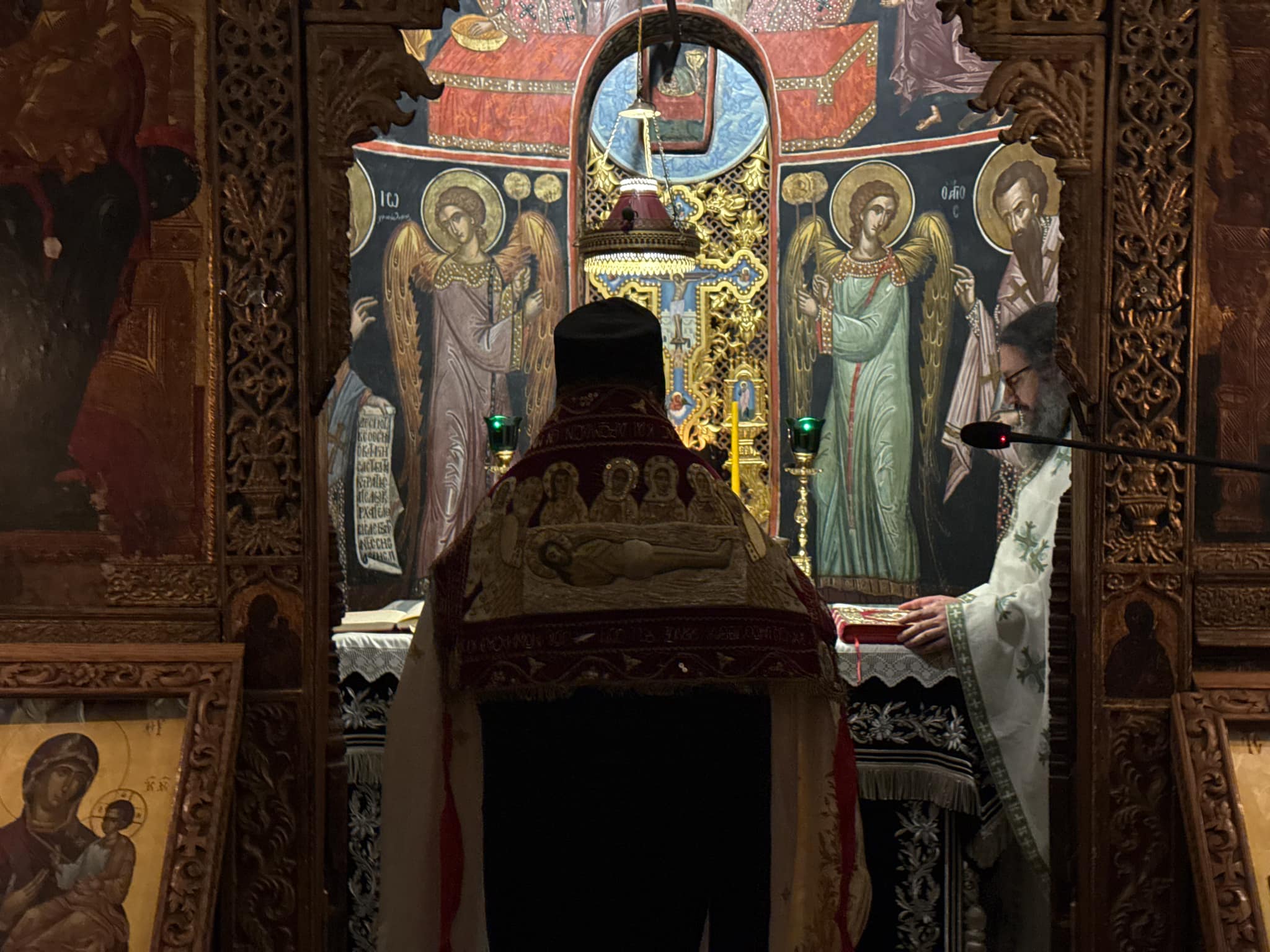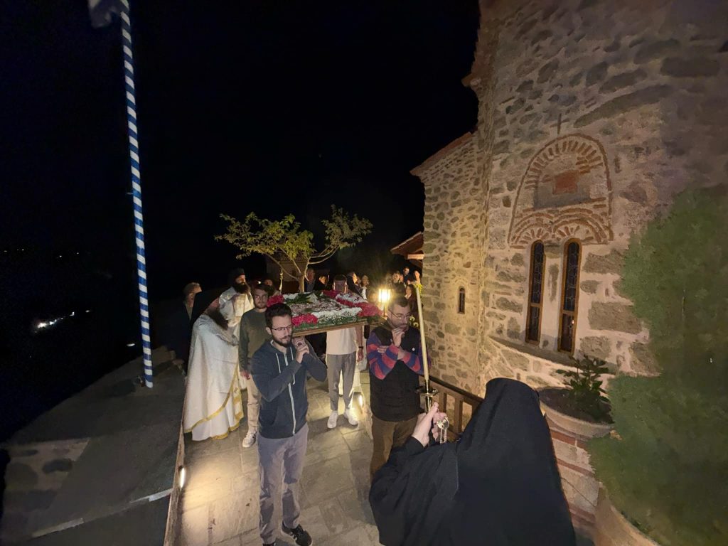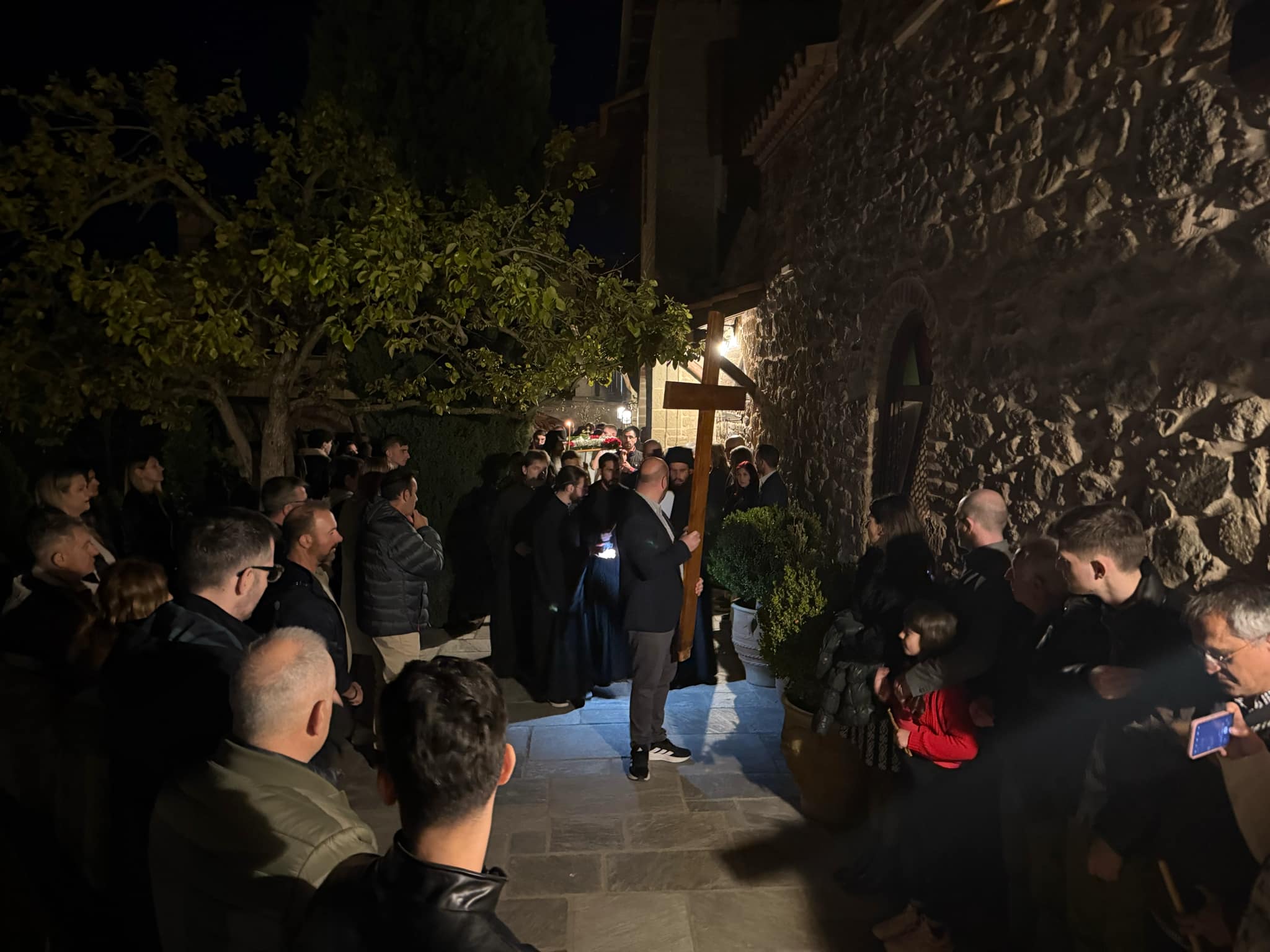 Σε κλίμα κατάνυξης και απολύτου σκότους τελέστηκε το βράδυ της Μεγάλης Παρασκευής η Ακολουθία του Επιταφίου στις Ιερές Μονές των Μετεώρων.
