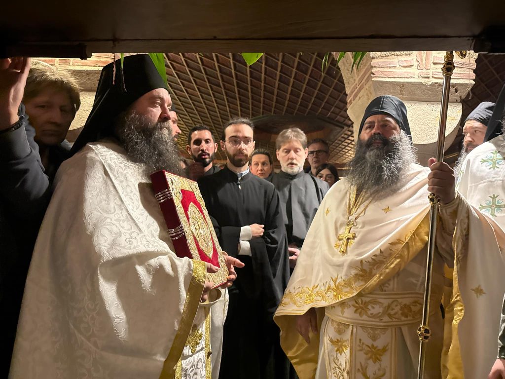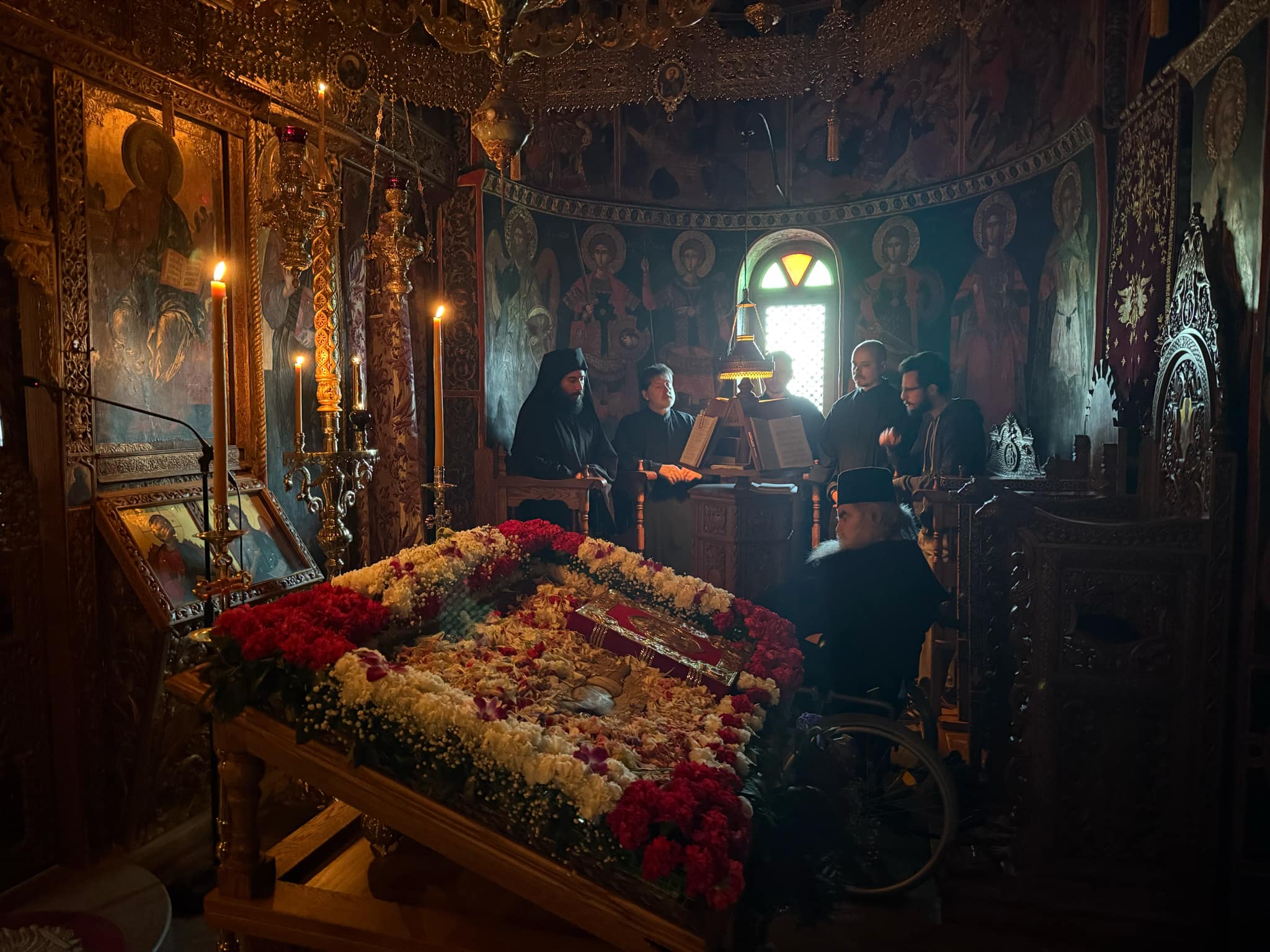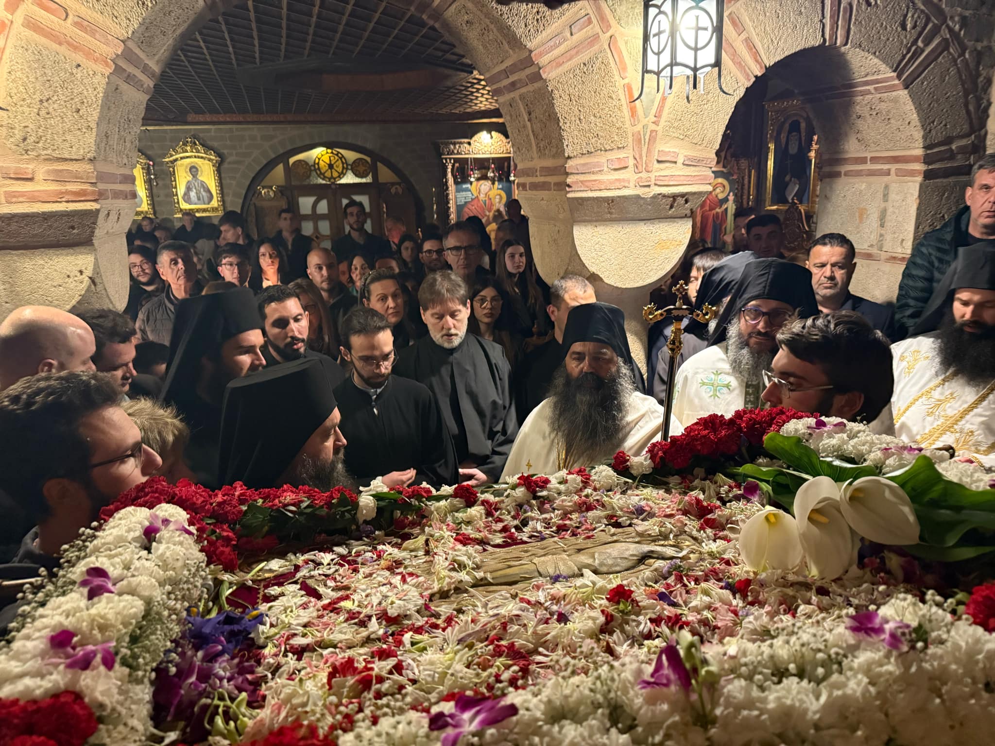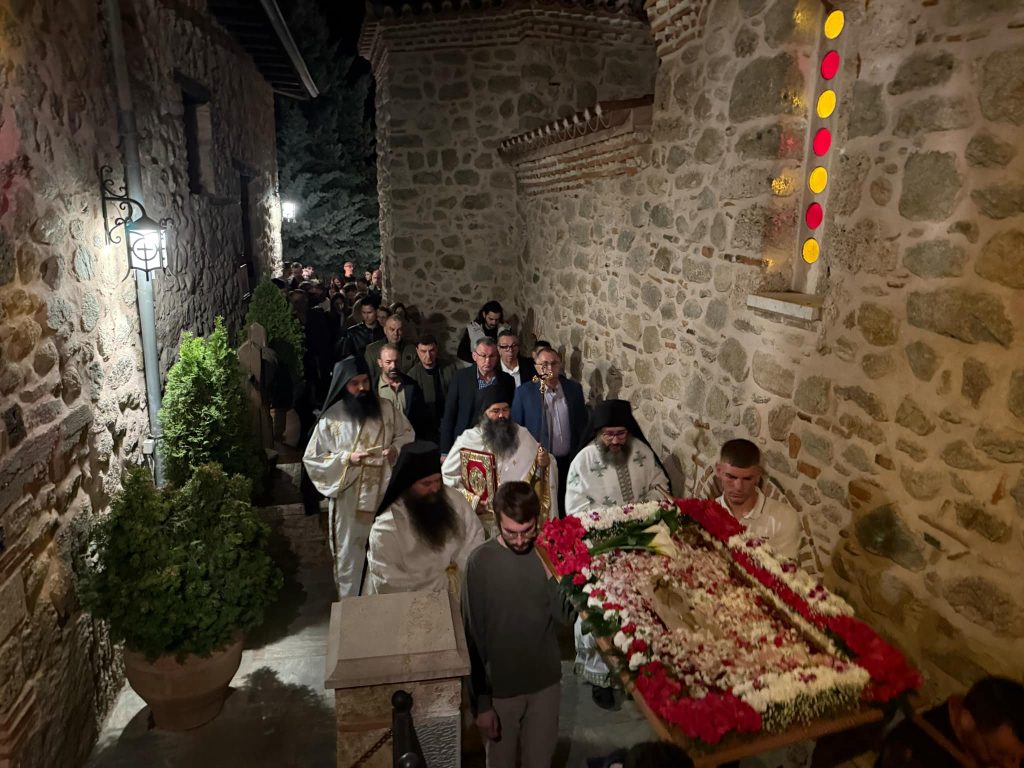 Σε κλίμα κατάνυξης και απολύτου σκότους τελέστηκε το βράδυ της Μεγάλης Παρασκευής η Ακολουθία του Επιταφίου στις Ιερές Μονές των Μετεώρων.