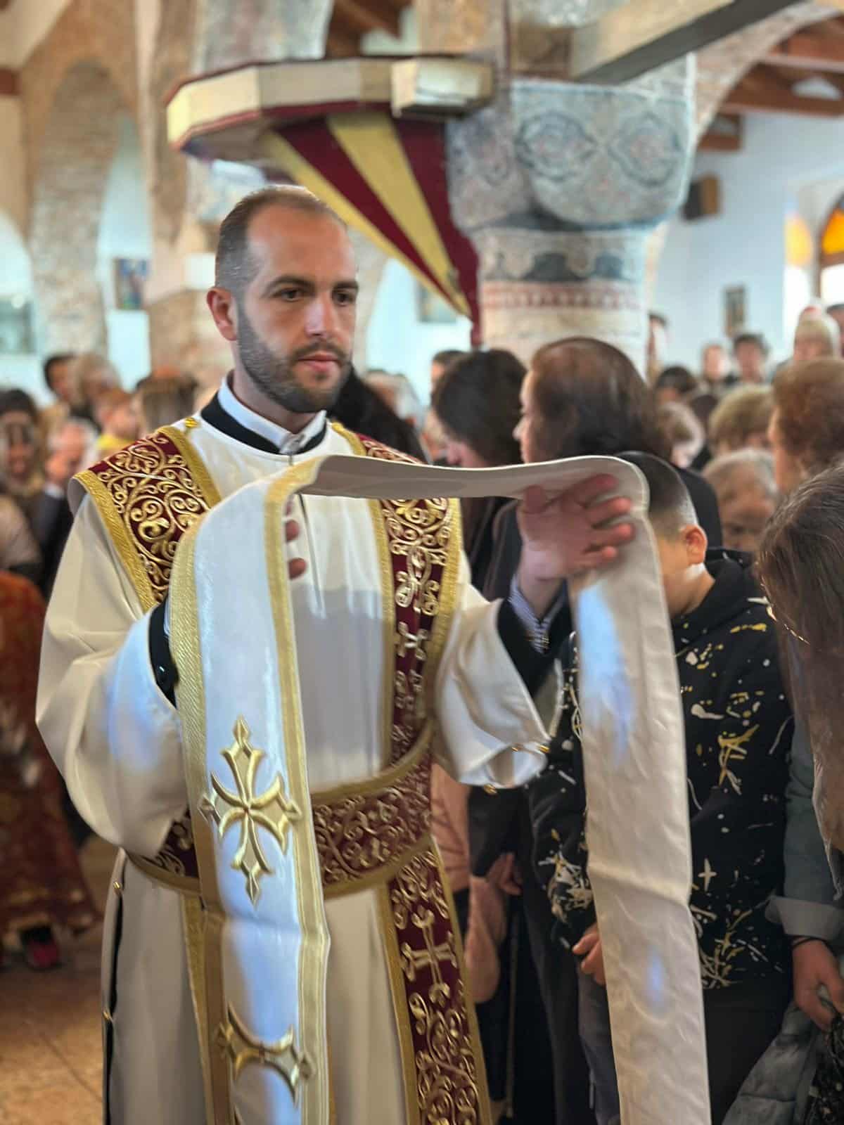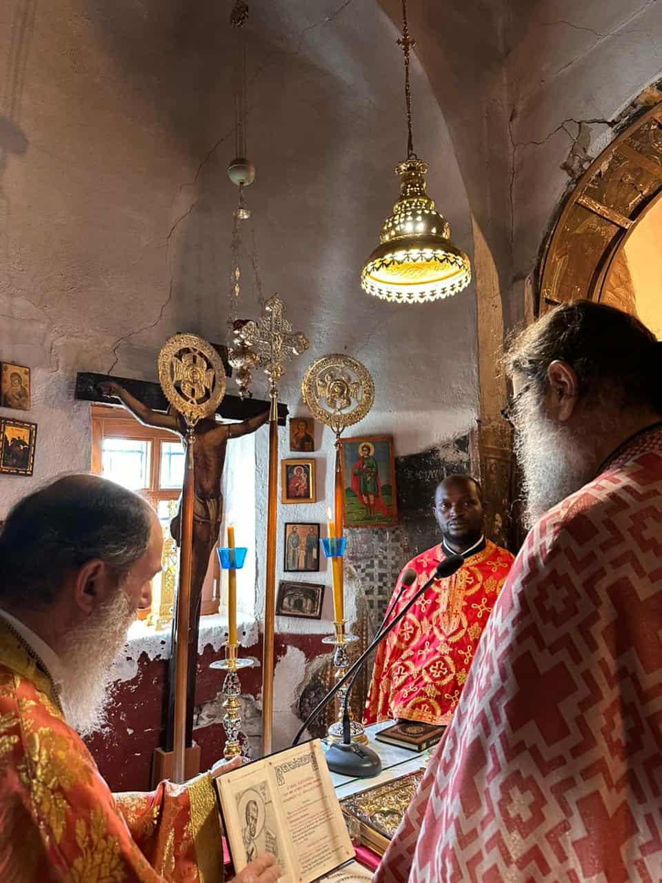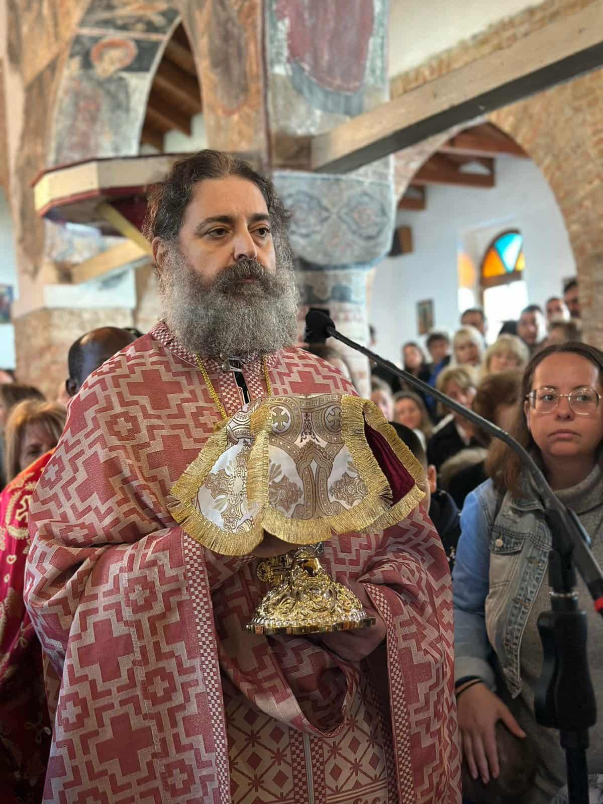 Τῆς Θείας Λειτουργίας προηξήρχε ὁ Θεοφιλέστατος Ἐπίσκοπος Στρατονικείας κ. Στέφανος, ἐκ τοῦ Οἰκουμενικοῦ Πατριαρχείου, πλαισιωμένος ἀπὸ ἱερεῖς τῆς Ἱερᾶς Μητροπόλεως Τρίκκης, Γαρδικίου καὶ Πύλης. Τὸ ἱερὸ ἀνάγνωσμα τοῦ Εὐαγγελίου ἔδωσε ἀφορμή στὸν Θεοφιλέστατο νὰ ἀναπτύξει θεολογικὰ τὸ παράδειγμα πίστεως, ἀνδρείας καὶ ἀγάπης πρὸς τὸν Χριστὸ τοῦ Ἁγίου Δημητρίου, τονίζοντας ὅτι ὁ Ἅγιος ἀποτελεῖ ζωντανὸ πρότυπο μαρτυρίας γιὰ τὸν σύγχρονο ἄνθρωπο. Στο τέλος τῆς Θείας Λειτουργίας, ὁ Θεοφιλέστατος ἐξέφρασε θερμές εὐχαριστίες πρὸς τὸν Σεβασμιώτατο Μητροπολίτη Τρίκκης, Γαρδικίου καὶ Πύλης κ. Χρυσόστομο, διὰ τὴν παραχώρηση ἀδείας καὶ φιλοξενίας, καθώς και προς τὸν ἐφημέριο καὶ τοὺς συνεργάτες τοῦ Ἱεροῦ Ναοῦ διὰ τὴν ἀψογη ὀργάνωση καὶ τὴν ἐμπνευσμένη συμμετοχή τῶν πιστῶν. Ἡ παρουσία πλήθους πιστῶν ἀπὸ τὰ Τρίκαλα καὶ τὴν εὐρύτερη περιοχή ἀπέδειξε γι’ ἄλλη μιὰ φορά τὴ βαθιὰ εὐλάβεια καὶ τὴν τιμή ποὺ τρέφει ὁ λαὸς γιὰ τὸν Μεγαλομάρτυρα Δημήτριο, προστάτη καὶ φύλακα τῆς πόλεως.